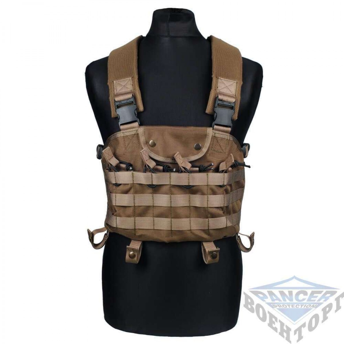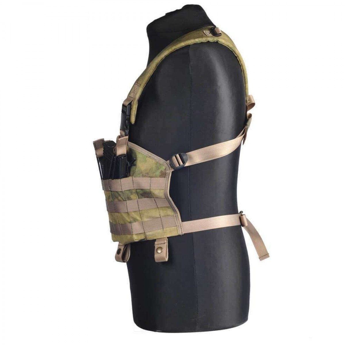 На всій передній панелі ліфчика розташовані петлі системи MOLLE, що дозволяє зручно розміщувати додаткове спорядження в подсумках, що мають відповідне кріплення.