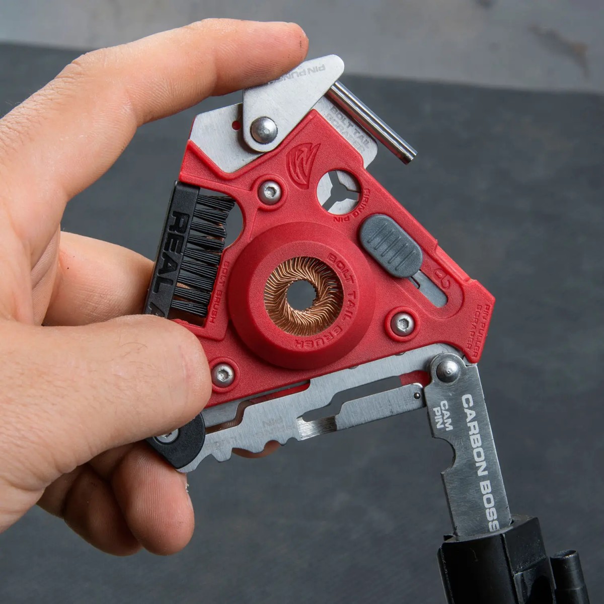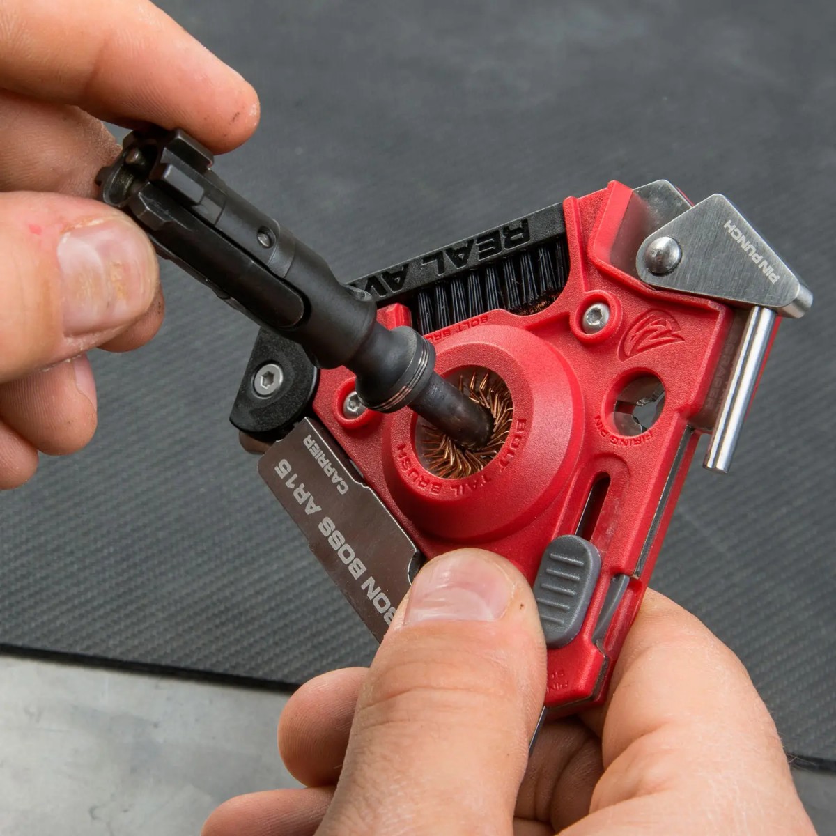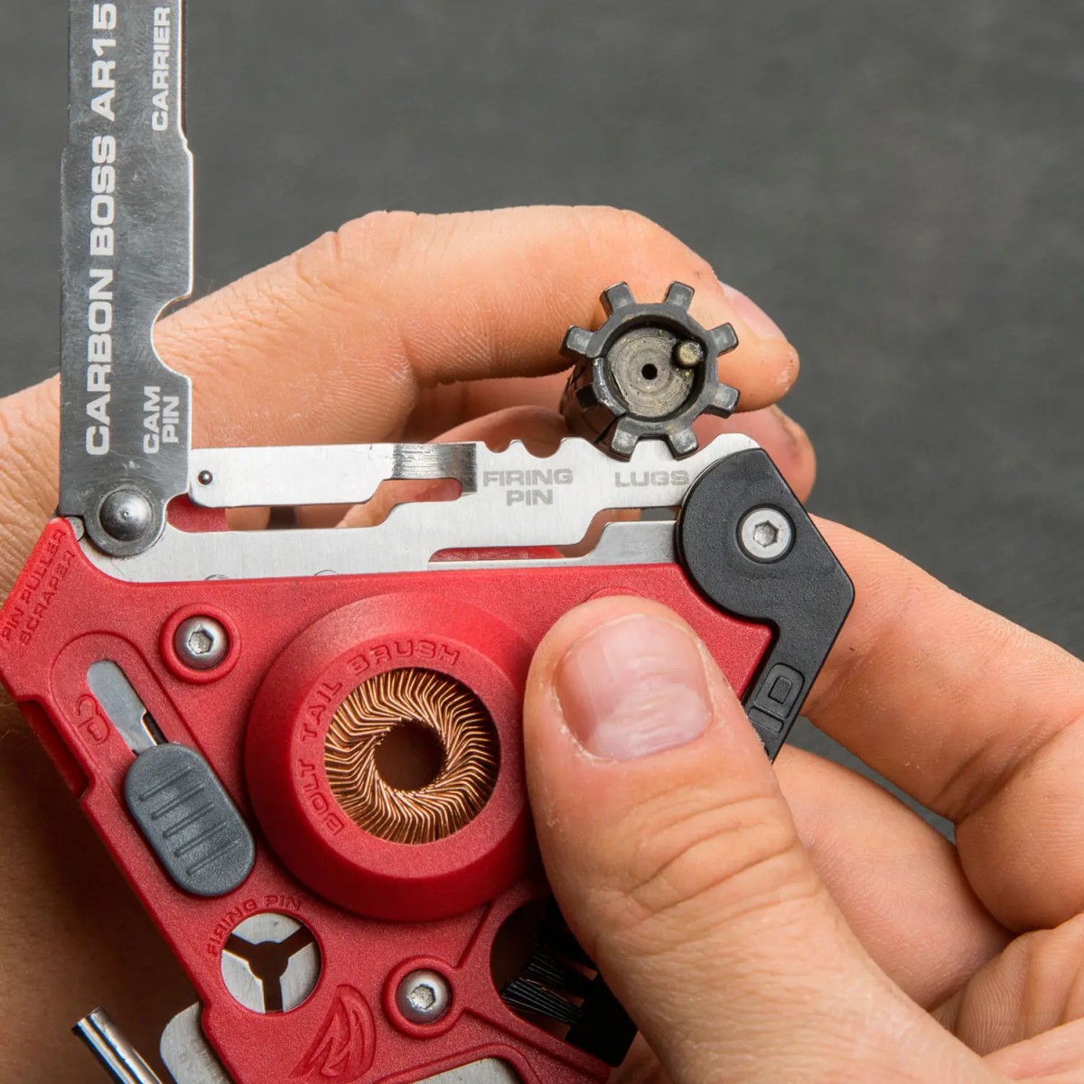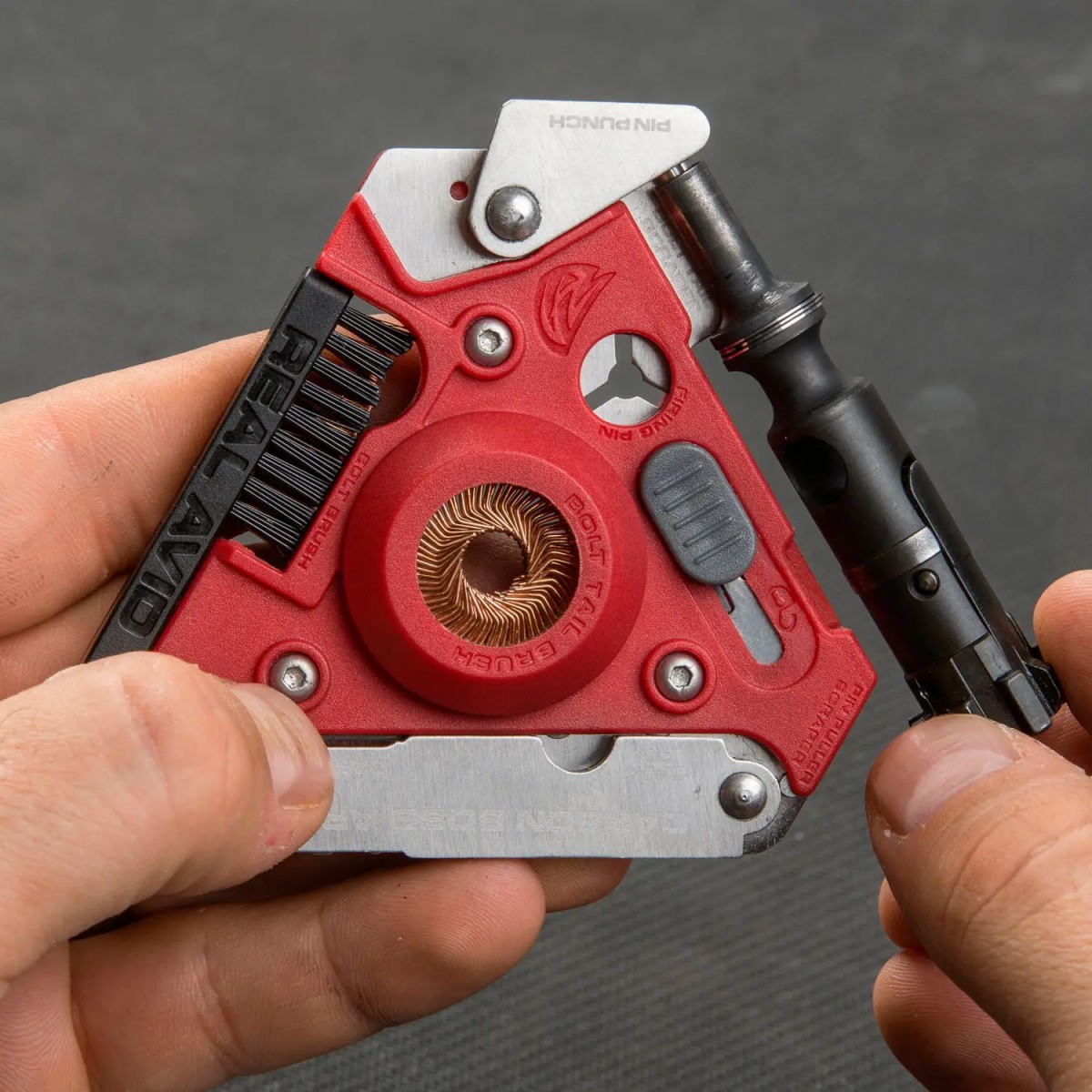 Інноваційна компактна трикутна конструкція вмістила в собі багато корисних інструментів для чищення затвора зброї на базі AR-15. Всі інструменти виготовлені з 420-ої нержавіючої сталі, і надійно фіксуються за допомогою лайнера.