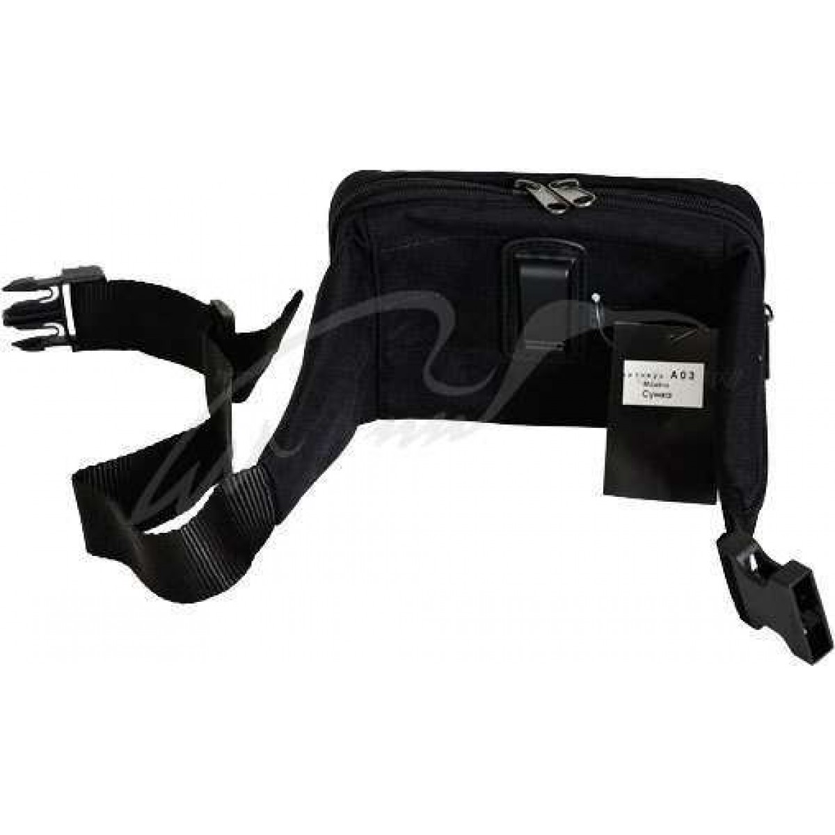 Сумка А03 виготовлена із синтетичного матеріалу і має чотири відділення: три – для необхідних дрібниць, основне – з кріпленням для зброї і магазину. Є кліпса для більш надійної фіксації на поясі.