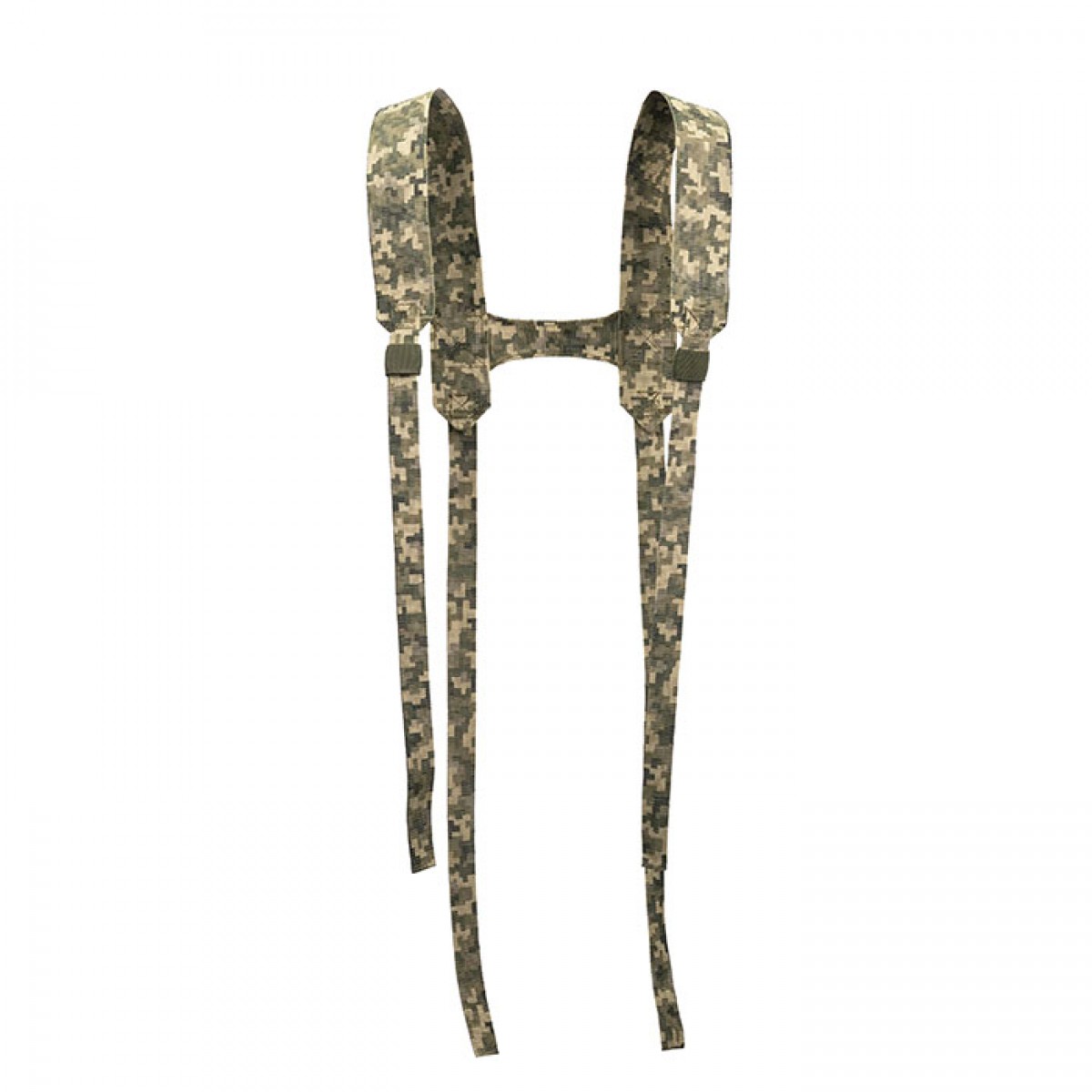 Ремінно-плечова система складається з розвантажувального пояса та лямок, які слугують для підтримки. У системі від «Балістики» вони не є обов’язковими, оскільки пояс пристосований для автономного носіння. Проте підтяжки все ж слугують додатковою опорою та додають комфорту при використанні РПС. Особливості виробу Лямки йдуть у комплекті до ремінно-плечової системи як додатковий аксесуар. Хоча вони не є обов’язковими, у разі навішування важкого спорядження можуть забрати на себе частину ваги. Крім того, характеризуються такими ознаками: Чотири точки кріплення забезпечують рівномірне розподілення ваги на плечі. Лямки фіксуються на поясі двощілинними пряжками, якими до того ж можна регулювати їхню довжину. Вільні кінці закріплюються за допомогою еластичних фіксаторів. Наспинний з’єднувальний ремінь не дає лямкам сповзати. Для виробництва використана ремінна стропа 5 см та 2,5 см, що витримає вагу будь-якого спорядження. Технічні характеристики Матеріал: поліамідна стропа 50 мм та 25 мм. Розмір: універсальний.Основні характеристики Лямки для РПС (ММ-14)