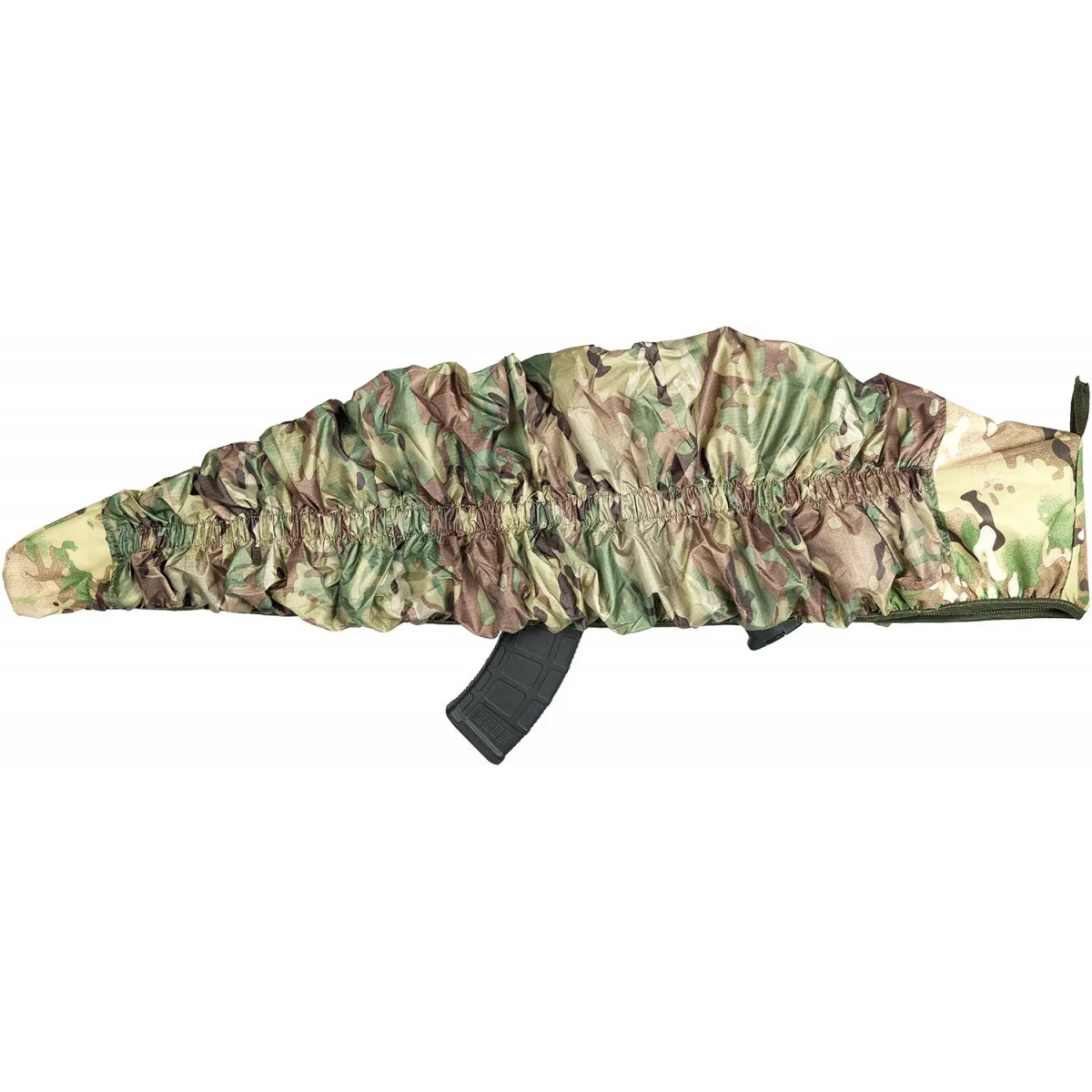 Чохол пошитий із дуже легкого водонепроникного матеріалу. Призначений для захисту зброї від дощу та снігу. Підійде для зброї з оптичним прицілом та стволами 16-26 дюймів. Поставляється в комплекті з вентильованим мішком для перенесення розмірами 10х16 см.