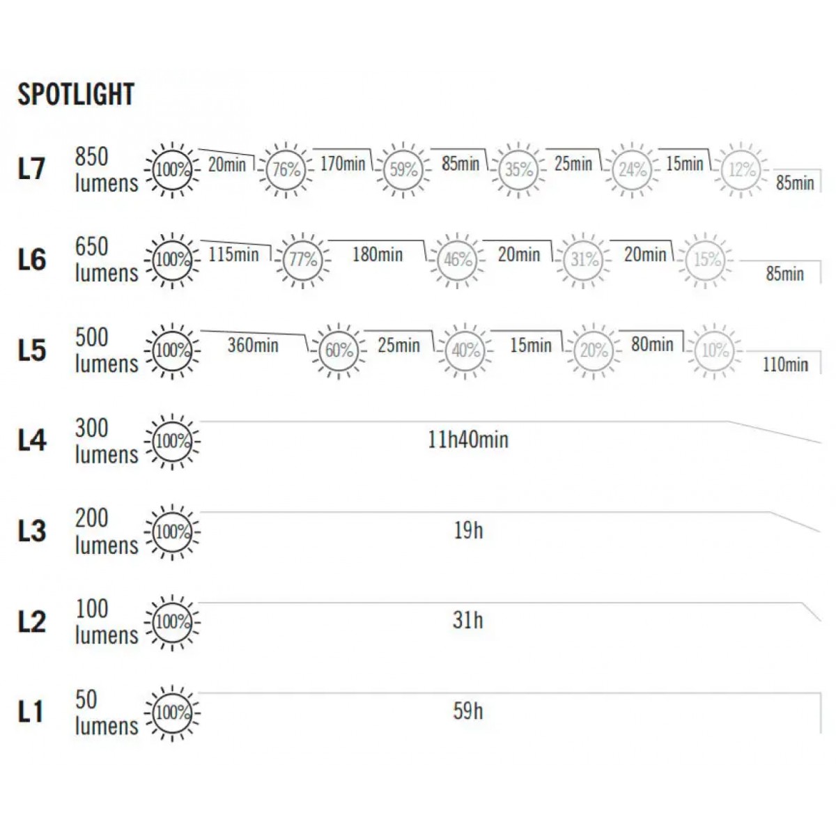 1. Turbo S 850~650~500~300~200~100 люмен - 20+170+85+25+15+85 хвилин