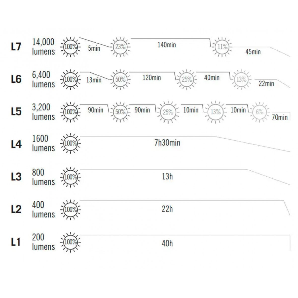 1. Turbo S - 14000~3200~1600 люмен - 5+140+45 хвилин