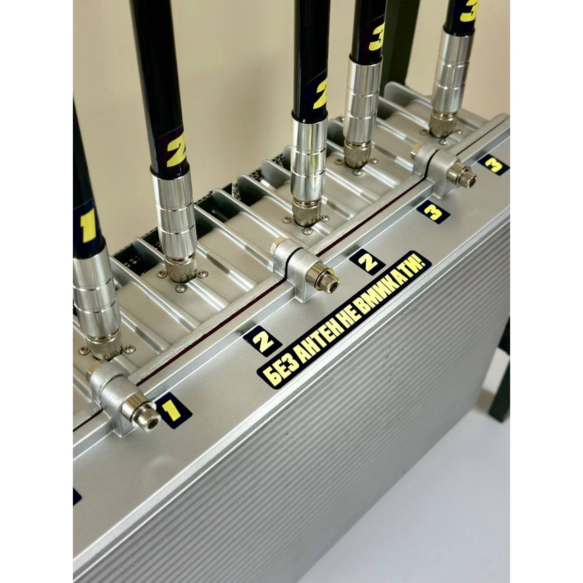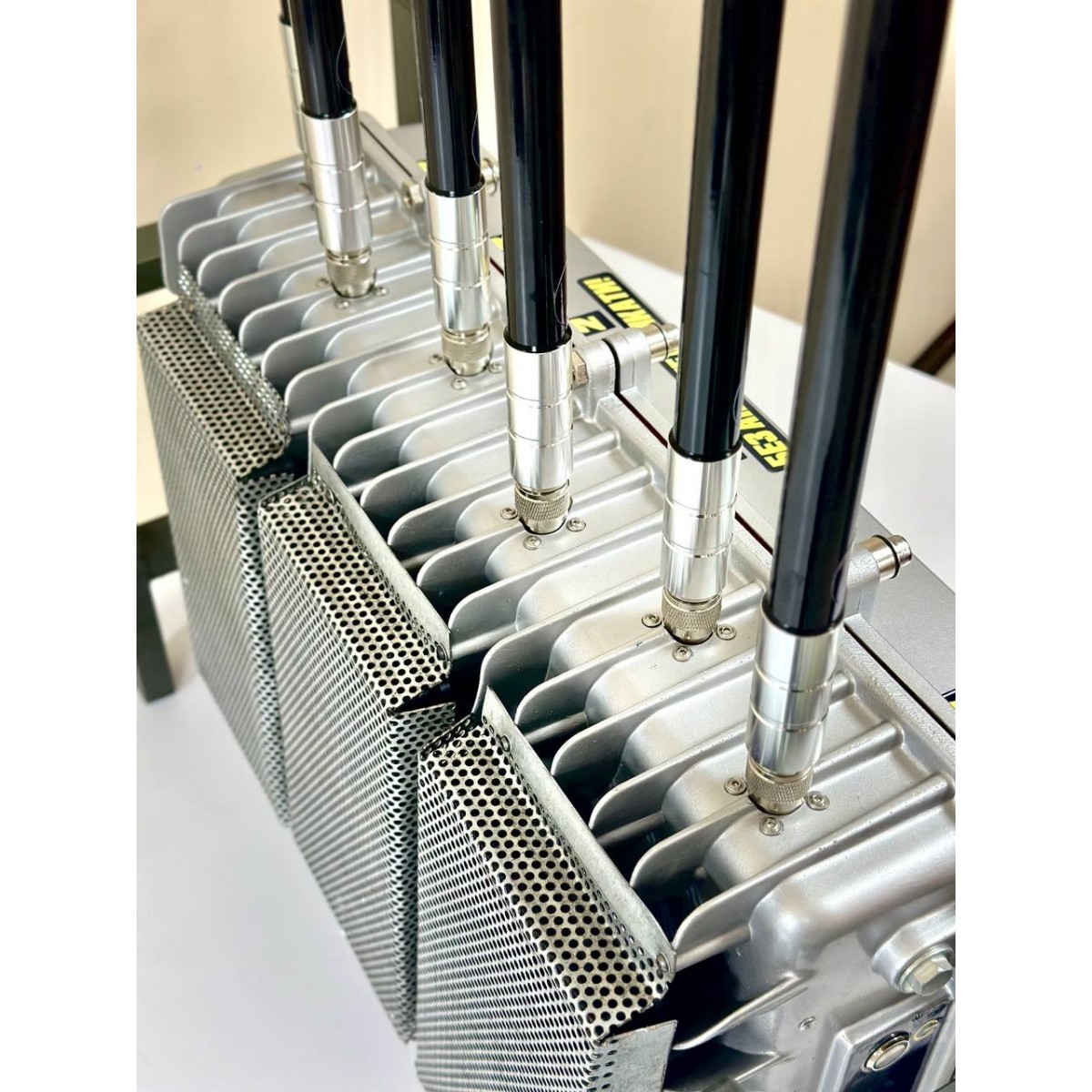 Пристрій може приглушити ударні FPV дрони на дистанцію від 70 м до 400 м (забиває ефір і не дозволяє пілоту продовжувати політ).