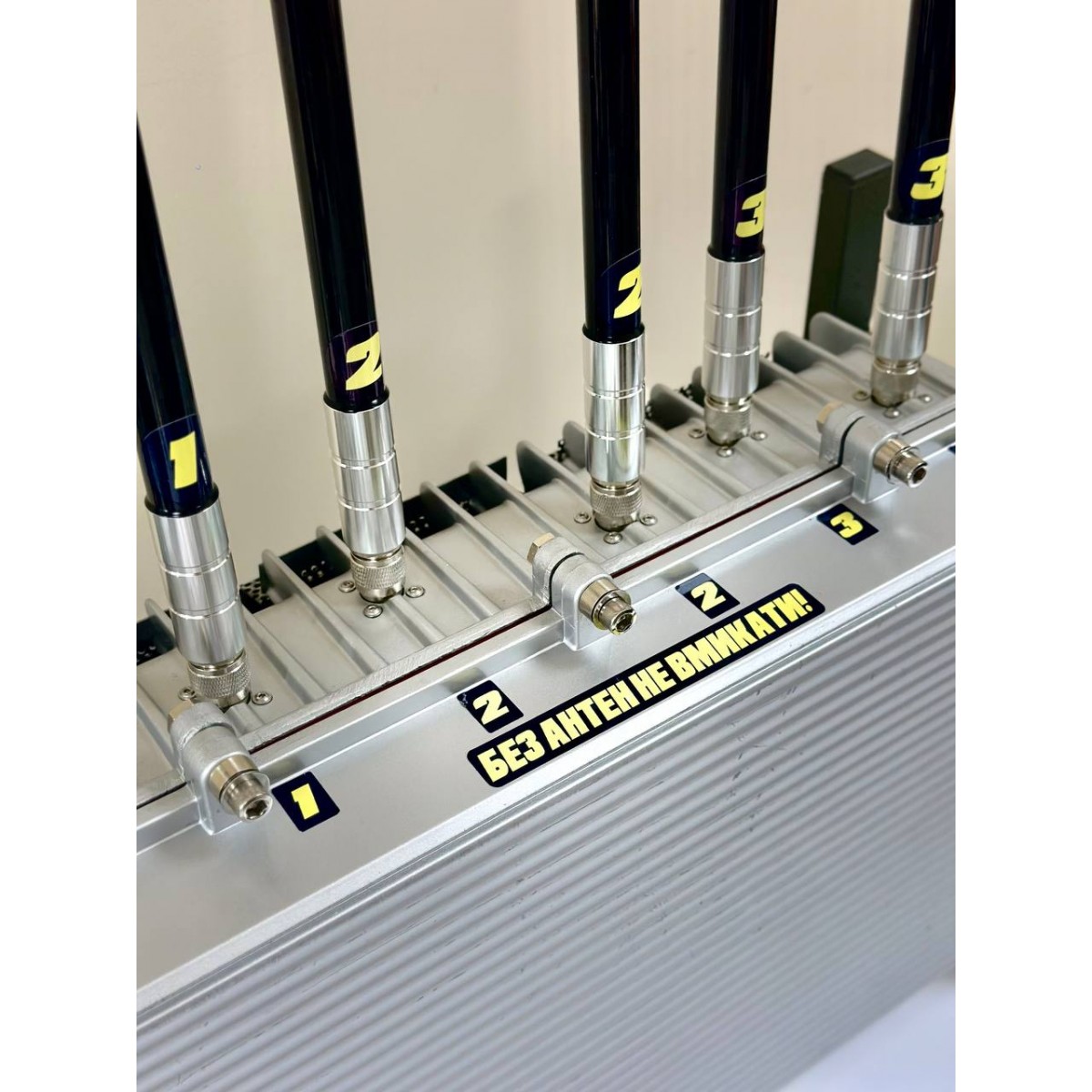 Має три окремі смуги перешкод: 700-820 МГц; 800-920 МГц; 900-1050 МГц. Також є можливість ставити заваду в усіх смугах одночасно та блокувати звʼязок для найбільш популярних FPV передавачів.