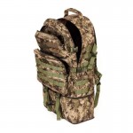 - Особливості: Водовідштовхувальна просочення, бічна стяжка, грудна стяжка, лямки анатомічної форми, система підвіски Molle, поясний ремінь