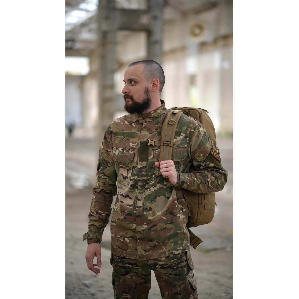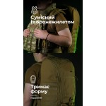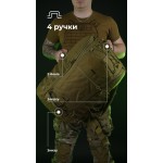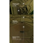 Тактичний рюкзак «Зоряник» забезпечить максимальний захист вашому Starlink або іншому цінному обладнанню. Це реалізовано завдяки жорстким вставкам, товстим демпферам у всіх стінках і окремим м’яким відсікам для антени й роутера. Рюкзак сумісний з бронежилетом та має все для підтримки спини – розвантажувальні стропи, м’які регульовані лямки та пояс, 3D-сітка з демпфером. ✅ Ключові переваги Адаптований для транспортування Starlink Standard (V2 / Gen 2), Standard Actuated (Gen 2) Є відсік для роутера, кишені для кабелів та місце для кріплення Якщо вийняти знімний відсік, зможе вмістити ще масивнішу техніку Товсті демпфери у всіх стінках і жорсткі вставки захищають вміст від пошкоджень та зберігають форму рюкзака 9 зовнішніх і внутрішніх кишень / перегородок Зручно сидить завдяки регульованим лямкам, поясу і грудному ремінцю Стропи на лямках розвантажують спину Спинка та лямки оснащені 3D-сіткою й демпферами 4 ручки для підняття з будь-якого положення Система MOLLE, шоккордова «павутинка» і велкро-панель Витривалі матеріали: нейлон 1000D (аналог Cordura), якісна фурнітура YKK, WJ, AMM Об’єм – 43,5 л, вага – 2,5 кг Опис товару Цей рюкзак якнайкраще підходить для носіння важкого обладнання впродовж тривалого часу і захищає його від пошкоджень. Водночас дозволяє впорядковано зберігати не лише Starlink і супутнє обладнання до нього, а й будь-які інші речі. Налаштування та посадка Регульовані знімні лямки. Кріпляться до панелі з 8 чарунок моллі за допомогою велкро-хлястика. Висоту кріплення можна обрати відповідно до зросту та кількості екіпірування на військовому. Регульований грудний ремінець. Можна налаштувати як за обхватом, так і за висотою завдяки рамці-перехіднику. Розвантажувальні стропи на лямках. Допомагають регулювати висоту лямок та положення рюкзака відносно тулуба, а отже, зменшують навантаження на спину. Крім того, стропи оснащені D-кільцями для підвішування додаткових інструментів та аксесуарів. Знімний пояс. М’який пояс висотою 13 см передає частину ваги на таз, також зменшуючи навантаження на спину. ✔️ Протягнутий під демпфером у ділянці попереку, регулюється за довжиною, застібається фастексом. ✔️ Має два ряди чарунок моллі для додаткового спорядження. 3D-сітка з демпфером. Лямки та спинка рюкзака обшиті 3D-сіткою з демпфером, що забезпечує вентиляцію та рівномірне розподілення ваги. Ручки та кріплення Чотири міцні ручки зі стропи. Розміщені зверху, з боків (дві) і спереду знизу. Дозволяють зручно хапати рюкзак з будь-якого положення, діставати / вкладати в багажник або на високу полицю. Фігурна велкро-панель (~19×8 см). Вміщена на фасаді, слугує для кріплення ідентифікаторів, патчів. Шоккорд з фіксатором. Протягнутий через петлі зі стропи і призначений для закріплення зовні невеликого легкого спорядження чи одягу. Чарунки моллі. Бокові панелі оснащені 6 рядами чарунок. Ще 2 ряди нашиті на дні, через них можна протягнути стяжку для закріплення, наприклад, каремата, спальника, плаща тощо. Зовнішні кишені На фасаді розташована кишеня (26×20 см) для швидкого доступу до дрібних речей. На бокових панелях вміщено по дві плоскі кишені однакового розміру (21×58 см) – одна поверх одної. Вони не з’єднані між собою всередині й мають окремий доступ: з верхнім та боковим завантаженням. Усі чотири замикаються блискавками. Ззаду під ручкою є доступ до кишені на велкро-клапані (27×36
