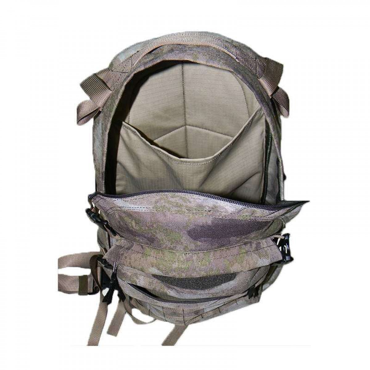 Основне велике відділення з перемичкою і два зовнішні кишені. Розміри: основне відділення-20х35хһ55 см,зовнішні кишені: два по 5х30хһ35 див. Система регулювання м'яких плечових лямок, регульований пояс.Ергономічна форма м'якої спинки. Зовні три ряди строп MOLLE для розміщення додаткових подсумков.Бічні стяжки для фіксації дод. спорядження.У нижній частині три ряди строп MOLLE з двома утяжными стрічками для фіксації дод. спорядження(каремат,спальник і т. д.) На зовнішній стороні велкро для кріплення патчів та ідентифікаторів.