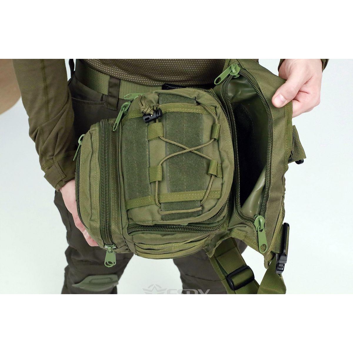 Дана модель отримала особливу популярність завдяки зручному розміщенню відділень, що робить цю компактну сумку і в той же час дуже місткою.Обладнана армованим відділення з швидким доступом для перенесення короткоствольної зброї.