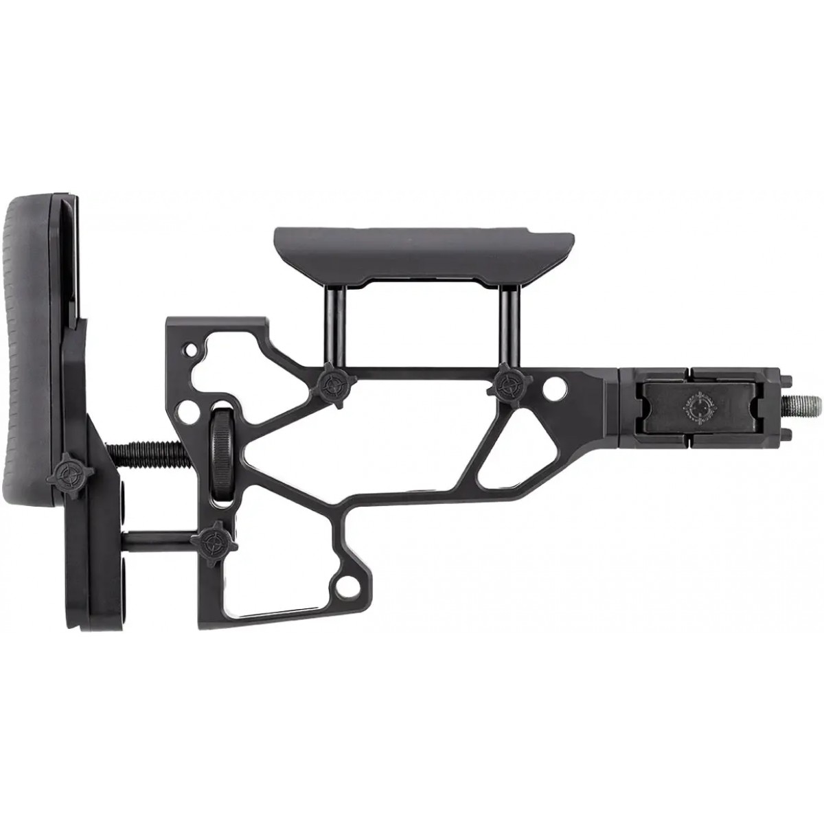 Цей приклад створений для забезпечення максимальної зручності при стрільбі. MDT Skeleton Rifle Stock дозволяє проводити регулювання потиличника за довжиною, висотою, а також нахилом, такі ж регулювання можливі й для щоки. Крім того, нижню частину прикладу можна доповнити планкою для встановлення спеціального адаптера упору.
