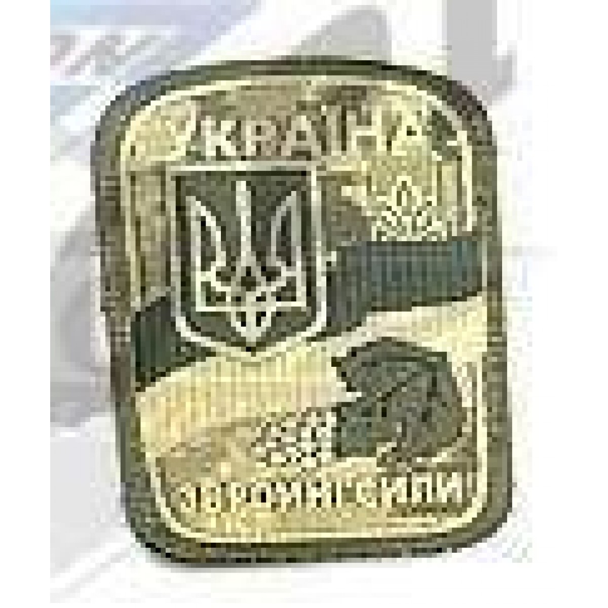 Шеврон "Україна" в стилі Нової форми Української армії. Виконаний з міцної тканини. Малюнок вишитий нитками, тому не зітреться і не змиється. Герб України контрастно виділяється на тлі нашивки.