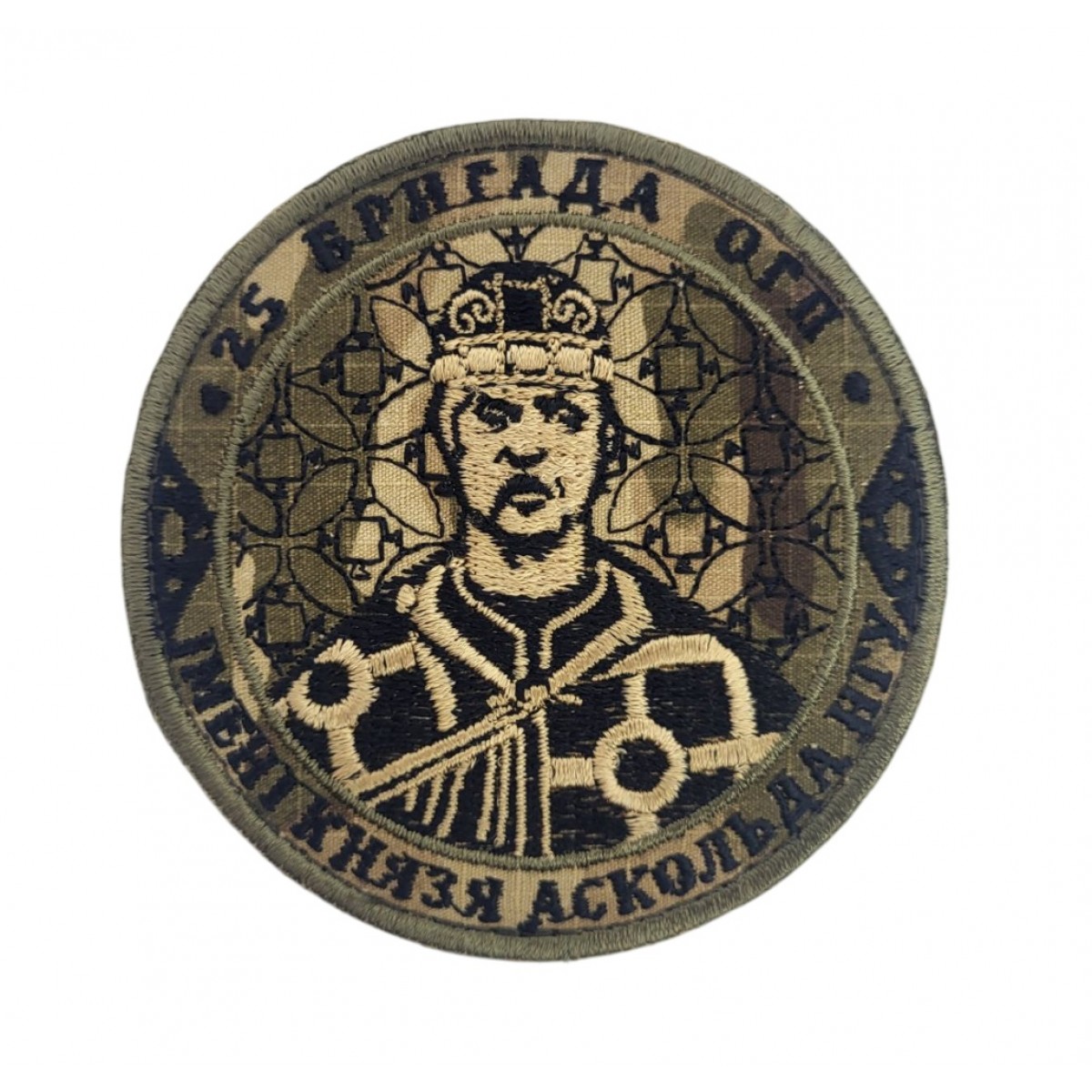 Опис Шеврон 25 бригада ОГП імені князя Аскольда НГУ світлий кант Мультикам (розмір 9х9 см)