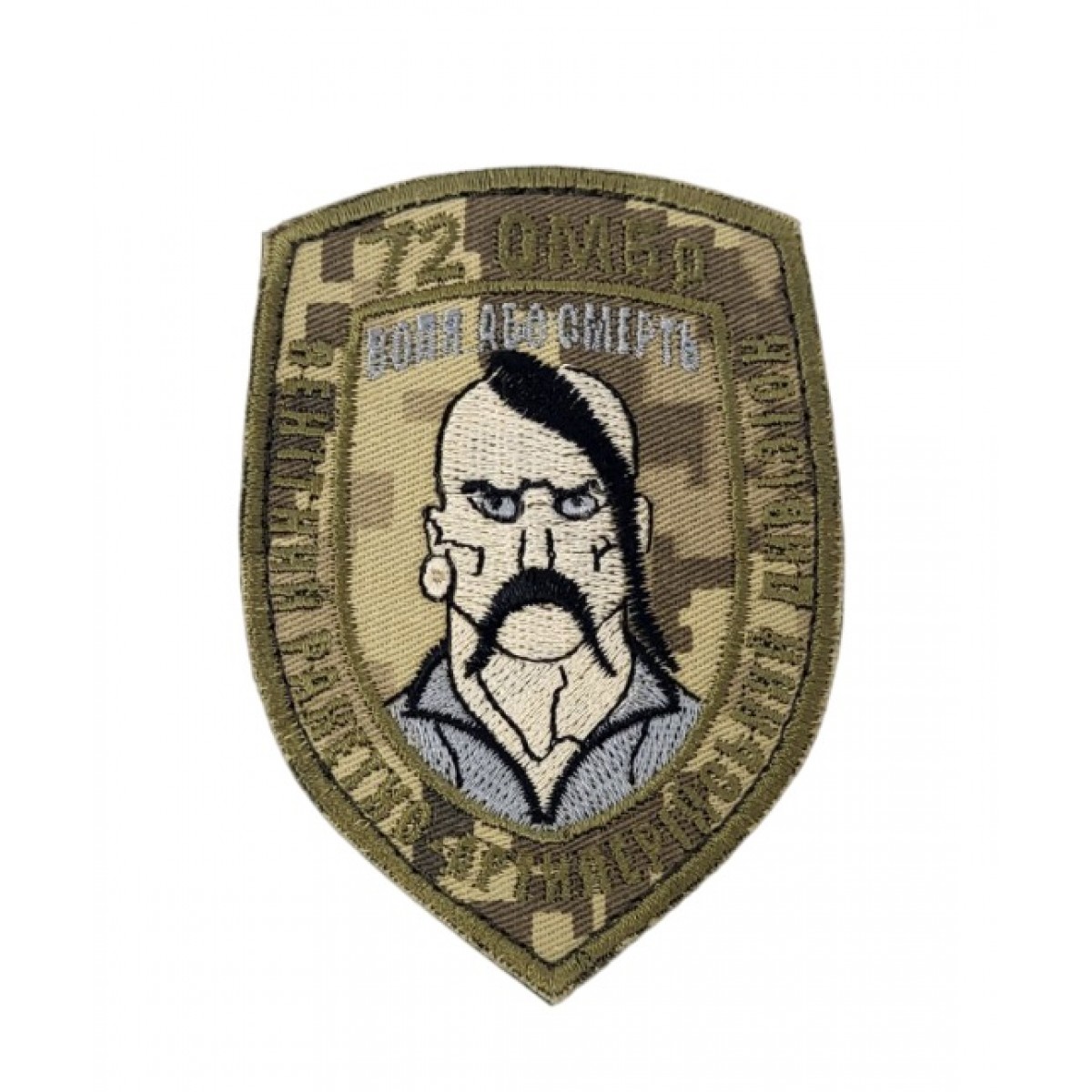 Основні характеристики Шеврон 72 Окрема Механізована бригада Зенітний артилерійський дивізіон Воля або Смерть старого зразка Піксель (розмір 7х9.5 см)