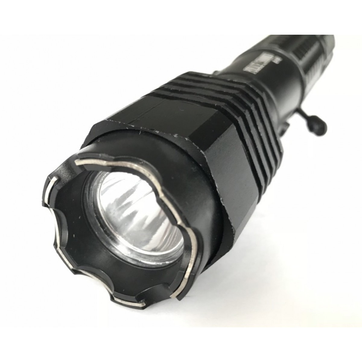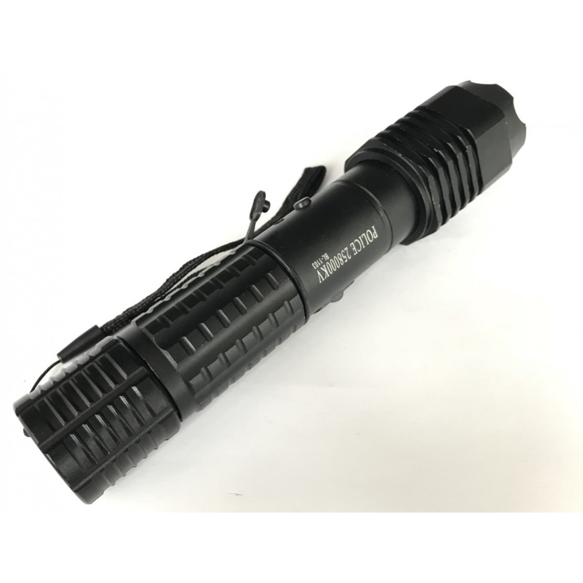 Електрошокер Police 1103 50000KV - призначений для ефективного захисту від зловмисників, бродячих собак і т.п. З його допомогою можна зберегти не тільки своє майно, але і своє життя. Крім потужного електричного розряду, противника можна засліпити яскравим світловим променем. До того ж вбудований ліхтарик послужить додатковим джерелом світла під час вечірніх прогулянок. Вбудований світлодіод XPE потужністю 180000 люмен забезпечить яскравий промінь на відстані до 150 метрів. Невеликі розміри шокера дозволяють його розмістити в невеликій жіночій сумочці або кишені курточки. Корпус виконаний з міцного алюмінію, пофарбованого в чорний колір. Він здатний витримати механічні пошкодження при падінні на землю або при самообороні.