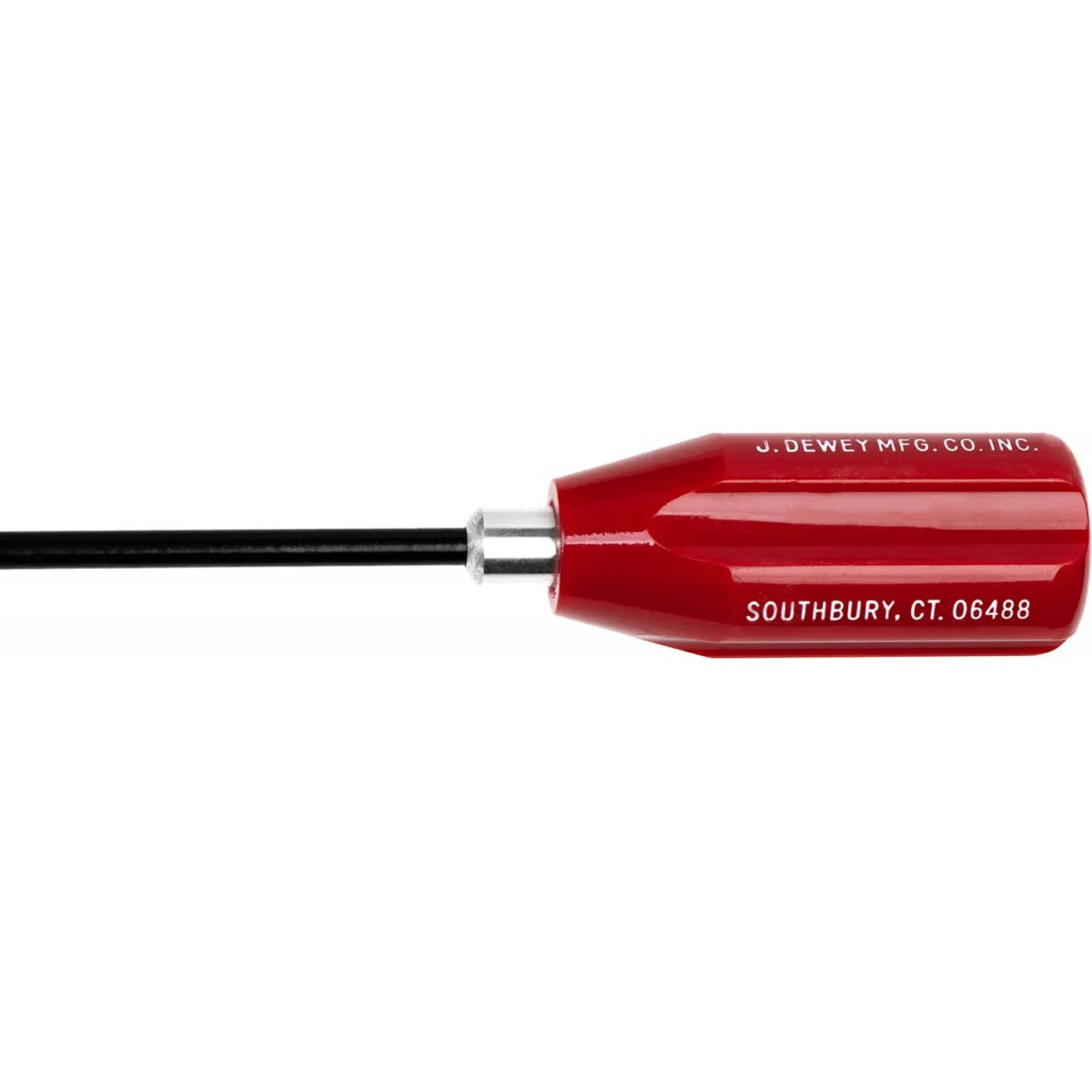 Шомполи Dewey виготовляють із цільного сталевого стрижня, вкритого нейлоновим обплетенням, що оберігає канал ствола від пошкоджень. У найменуванні вказується довжина шомпола без урахування розмірів руків’я, що спрощує підбір оптимального розміру під Вашу зброю. Руків’я з міцного пластику має два шарикопідшипники. Для міцного з’єднання шомпола з йоржиками і пухівками використовується спеціальний перехідник. Комбінація зовнішньої різьби шомпола і цього перехідника вважається більш технологічним і надійним варіантом, ніж якби в шомполі був отвір із внутрішньою різьбою.