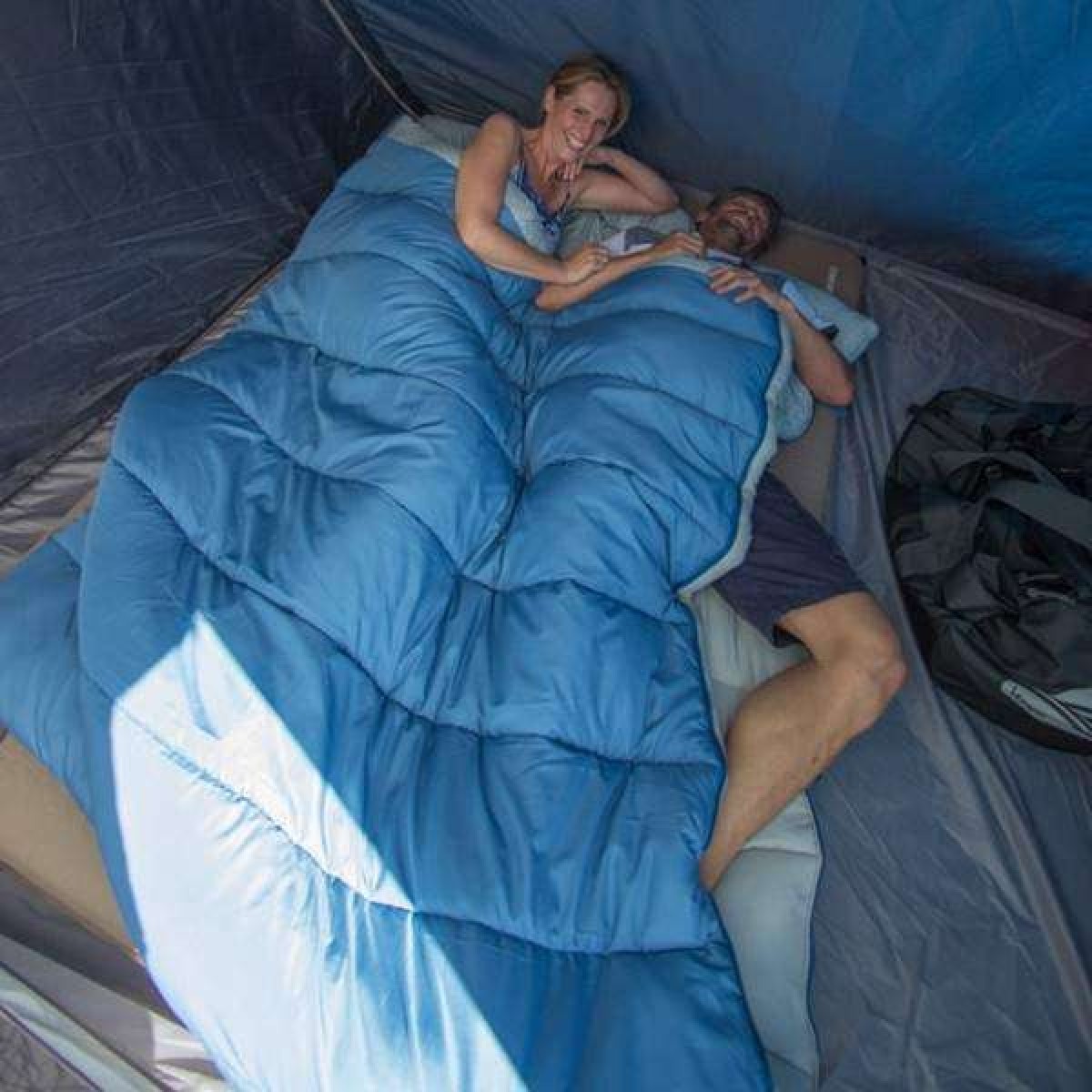 Двомісний спальний мішок може бути легко перетворений в два одномісних персональних спальних мішка.
