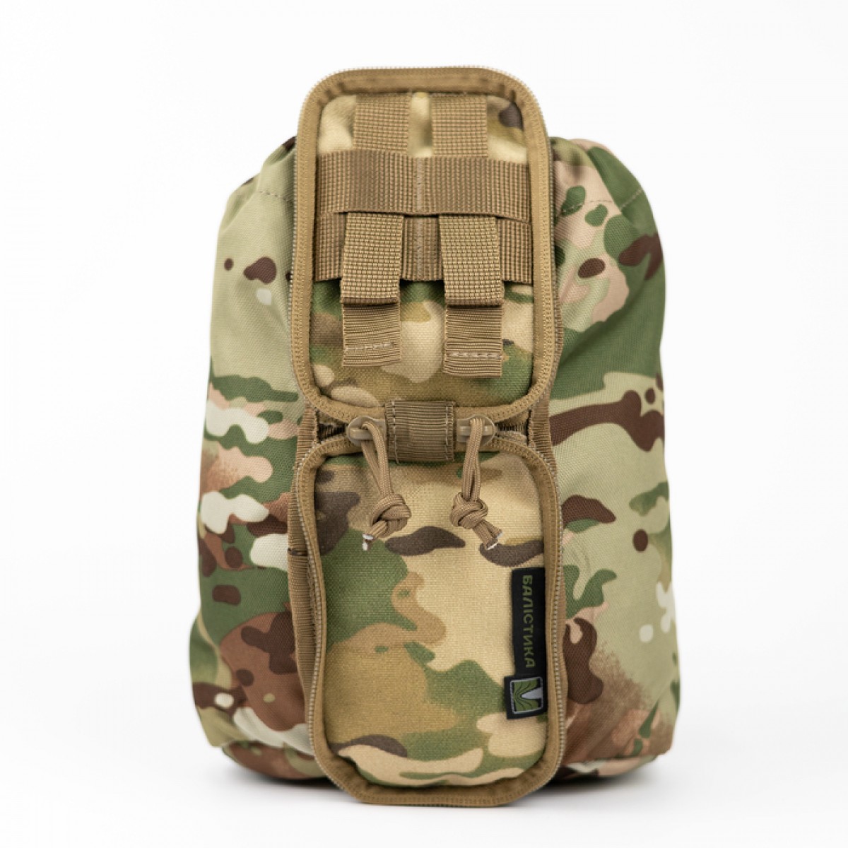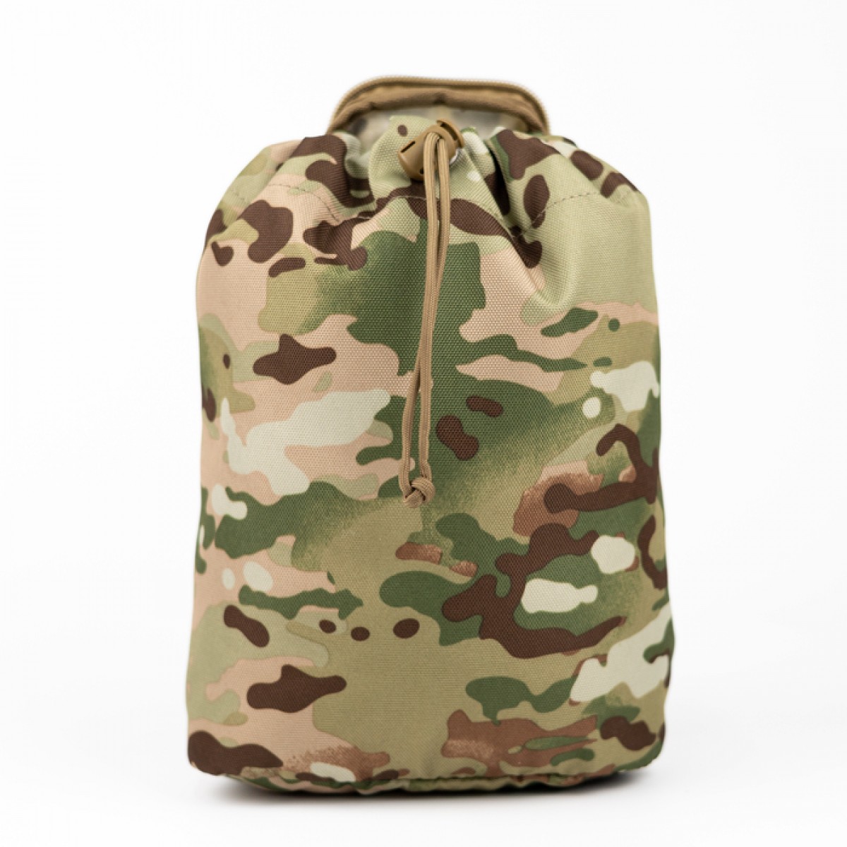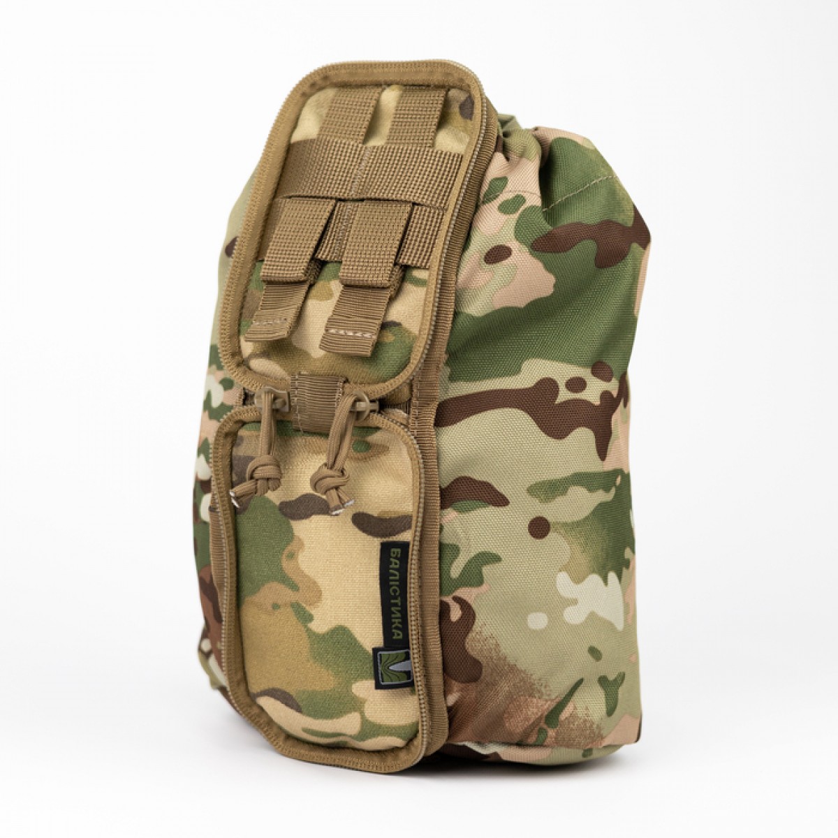 Сумка для скидання магазинів «Балістика» ССМ1 – це універсальне рішення, яке можна використовувати за прямим призначенням, тобто як основну і додаткову сумку для скидання, зберігання та перенесення порожніх магазинів. Або ж можна виявити фантазію та знайти їй застосування в інших тактичних цілях – як утилітарний підсумок, підсумок під сухпай, протигаз тощо. Особливості товару Цей виріб є досить простим з погляду конструкції та дизайну, однак незамінний на полі бою. Зокрема, він дає змогу забрати з собою використані магазини для повторної зарядки. Також у сумку можна сховати відходи (як-от сілі батарейки, обгортки від харчових продуктів чи індивідуальних перев’язувальних пакетів тощо), які здатні демаскувати позицію, щоб не дати ворогу зрозуміти, що нещодавно тут хтось був. Іншими перевагами сумки є такі: Для виготовлення були використанні міцні, водонепроникні та зносостійкі тканини. Горловина затягується міцною паракордовою шворкою та надійно закріплюється пластиковим фіксатором. Підсумок складається сам у себе і застібається на блискавку, при цьому займає мінімум місця, а в разі потреби його можна швидко розкрити. Розкладний підсумок ССМ1 розміщується на два ряди системи MOLLE, водночас займає по ширині лише дві секції, не заважаючи іншим підсумкам. У розкладеному стані підсумок вміщує до шести магазинів від автомата Калашникова або іншої автоматичної чи мисливської зброї. У ньому можна переносити патрони розсипом або інші негабаритні речі і навіть протигаз. Сумка дуже зручно кріпиться на підсумок під АК/АR «Колчан» і майже не займає місця при такому розміщенні. Можна використовувати як на РПС, так і просто як додаткову кишеню на рюкзаку з системою MOLLE. Технічні характеристики Місткість: до 6 магазинів. Зовнішній матеріал: Cordura 500D. Внутрішній матеріал: Oxford 600D. Стропа: нейлон. Розмір у складеному стані: 14×9×3 см. Розмір у розкладеному стані: 17×18×10 см. Вага: 100 г.Основні характеристики Сумка для скидання магазинів ССМ1 ТМ Балістика (Мультикам)