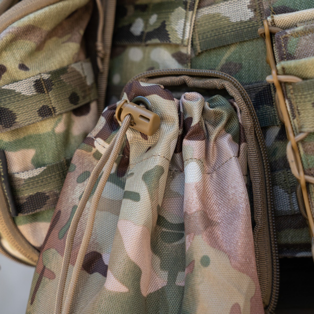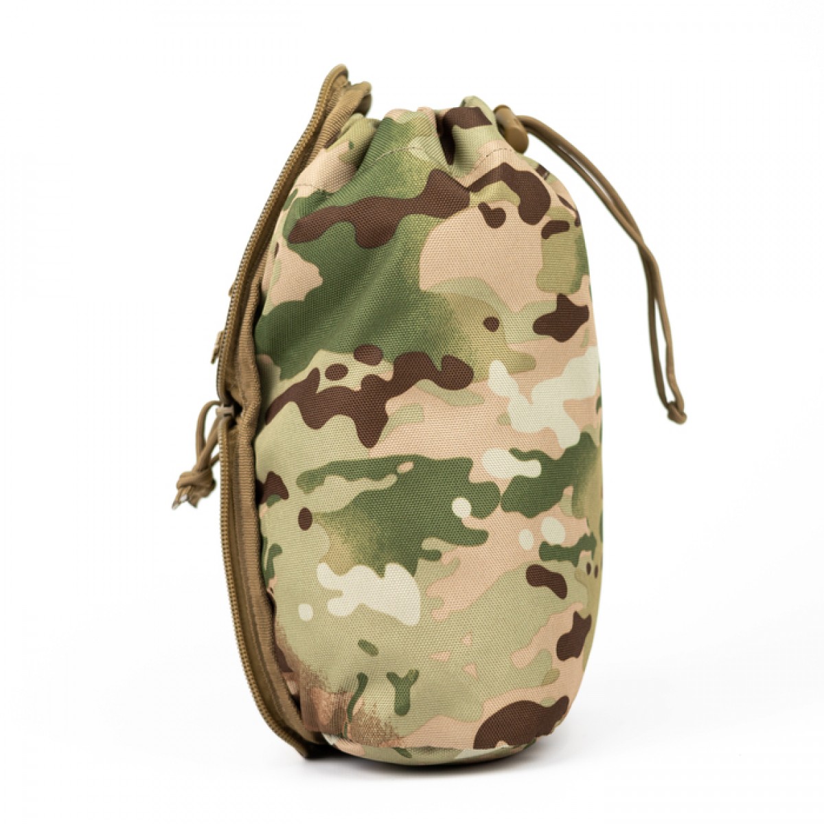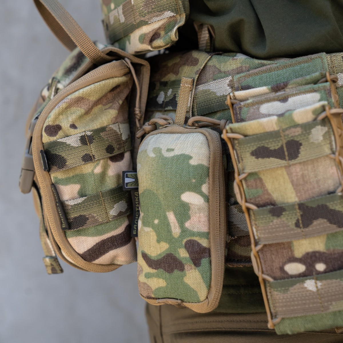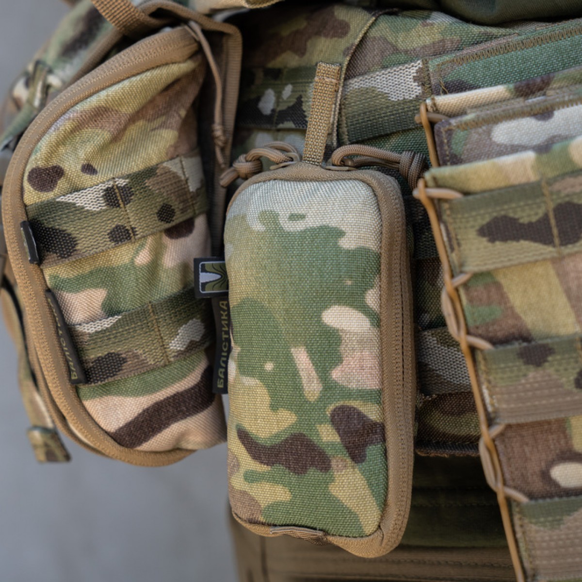 Сумка для скидання магазинів «Балістика» ССМ1 – це універсальне рішення, яке можна використовувати за прямим призначенням, тобто як основну і додаткову сумку для скидання, зберігання та перенесення порожніх магазинів. Або ж можна виявити фантазію та знайти їй застосування в інших тактичних цілях – як утилітарний підсумок, підсумок під сухпай, протигаз тощо. Особливості товару Цей виріб є досить простим з погляду конструкції та дизайну, однак незамінний на полі бою. Зокрема, він дає змогу забрати з собою використані магазини для повторної зарядки. Також у сумку можна сховати відходи (як-от сілі батарейки, обгортки від харчових продуктів чи індивідуальних перев’язувальних пакетів тощо), які здатні демаскувати позицію, щоб не дати ворогу зрозуміти, що нещодавно тут хтось був. Іншими перевагами сумки є такі: Для виготовлення були використанні міцні, водонепроникні та зносостійкі тканини. Горловина затягується міцною паракордовою шворкою та надійно закріплюється пластиковим фіксатором. Підсумок складається сам у себе і застібається на блискавку, при цьому займає мінімум місця, а в разі потреби його можна швидко розкрити. Розкладний підсумок ССМ1 розміщується на два ряди системи MOLLE, водночас займає по ширині лише дві секції, не заважаючи іншим підсумкам. У розкладеному стані підсумок вміщує до шести магазинів від автомата Калашникова або іншої автоматичної чи мисливської зброї. У ньому можна переносити патрони розсипом або інші негабаритні речі і навіть протигаз. Сумка дуже зручно кріпиться на підсумок під АК/АR «Колчан» і майже не займає місця при такому розміщенні. Можна використовувати як на РПС, так і просто як додаткову кишеню на рюкзаку з системою MOLLE. Технічні характеристики Місткість: до 6 магазинів. Зовнішній матеріал: Cordura 500D. Внутрішній матеріал: Oxford 600D. Стропа: нейлон. Розмір у складеному стані: 14×9×3 см. Розмір у розкладеному стані: 17×18×10 см. Вага: 100 г.Основні характеристики Сумка для скидання магазинів ССМ1 ТМ Балістика (Мультикам)