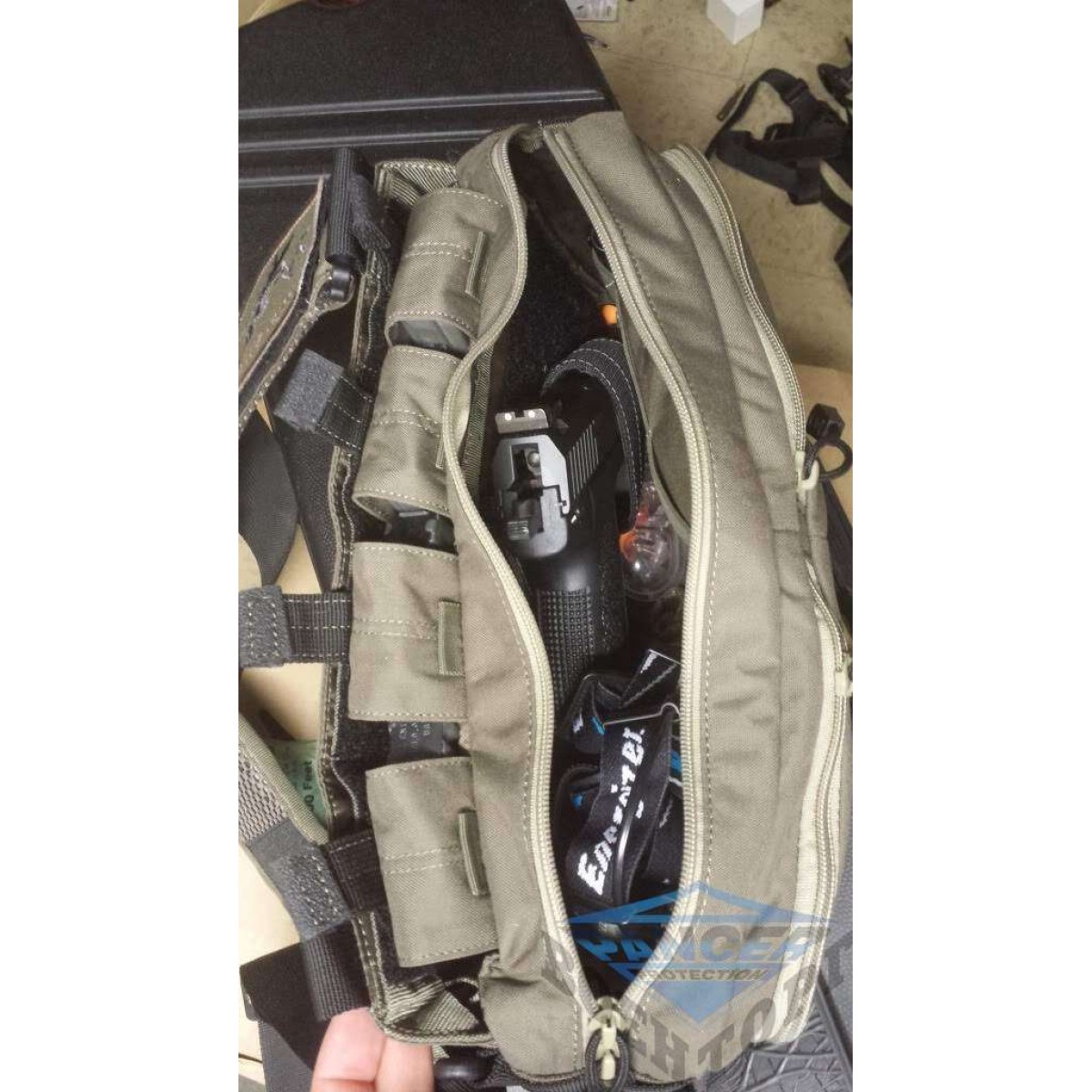 Сумка обладнана відділенням для прихованого носіння короткоствольної зброї. Матеріал сумки має спеціальне просочення, що захищає сумку від впливу зовнішніх факторів (волога, бруд тощо). Вся фурнітура та застібки від YKK® і Duraflex™.