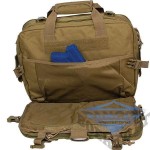 Є спеціальний відділ швидкого доступу, обладнаний функціональним кріпленням на липучці Velcro для транспортування зброї. Ви можете відрегулювати кріплення (кобуру), виключно за своїм індивідуальним вимогам, враховуючи специфіку револьвера. В цілях самозахисту, вам знадобляться лічені секунди, щоб дістати зброю з сумки. Сумка пошитий з високоміцного поліестерового матеріалу щільністю в 600D. Внутрішня частина тканини має надійне PVC (ПВХ) покриття, яке перешкоджає проникненню вологи в рюкзак. Матеріал стійкий до зношування й стирання, міцний на розрив, стійкий до ультрафіолетового випромінювання. Особливості: Спина: анатомічної форми, складається з щільної пінополіуретанової основи обшитої дихаючої сітчастої тканиною. Плечові лямки: анатомічної форми, регульовані по висоті, складаються з м'якої пінополіуретанової основи обшитої дихаючої сітчастої тканиною, можуть бути приховані в спеціальній кишені на блискавці, обладнані знімною нагрудної стяжкою. Блискавки замків використовуються від відомої торгової марки SBS». Вони мають підвищену міцність роз'ємів і дозволяє витримувати велику кількість циклів відкриття / закриття. Відділ швидкого доступу для транспортування зброї, замикається за допомогою Velcro, обладнаний кріпленням на липучці Velcro для кобури, має додатковий кишеню на блискавці, об'єм регулюється з допомогою фастексов. Передбачена можливість швидкого доступу до вмісту з фасадної сторони сумки, через роз'єм на блискавці. Основний відділ призначений для безпечного транспортування ноутбука з діагоналлю до 17 ", розкривається на 180°, має два відділу з ременями на фастексах для фіксації ноутбука, додаткові кишені відкритого і закритого типу на блискавках для дрібних речей. Відділ обладнаний компресійними ременями на фастексах які регулюють відкриття основного відділу. Система Molle» для навісу додаткового обладнання. Можливість регулювання обсягу Відділення сумки для транспортування документів сумісно з формат А4 Дві кишені закритого типу на блискавках розташовані на фасадної частини, всередині мають додаткові кишені, оддин з яких має знімний кріплення на фастексе для ключів. Зовні обладнаний системою Molle, Velcro та вікном "ID" для розміщення контактної інформації Знімний ремінь через плече, має знімну еластичну вставку для зручності носіння сумки через плече. Безшумні блискавки і пряжки фастексов. Безшумні, подовжені пулеры на блискавках, для зручності відкриття кишень в рукавичках Посилені три торцеві ручки для перенесення в руках у різних положеннях Місце для кріплення імен і нашивок (патчі) на липучці (Velcro). Характеристики: Обсяг, л: 20 Вага, кг: 1.445 Розміри, см: 32х41х15 Матеріал: 100% Polyester 600D PVC (ПВХ) покриттям - міцний поліестеровий матеріалу, стійкий до зношування й стирання Колір: койот (Coyote) Призначення: тактична для військовослужбовців, міська для повсякденного використання.