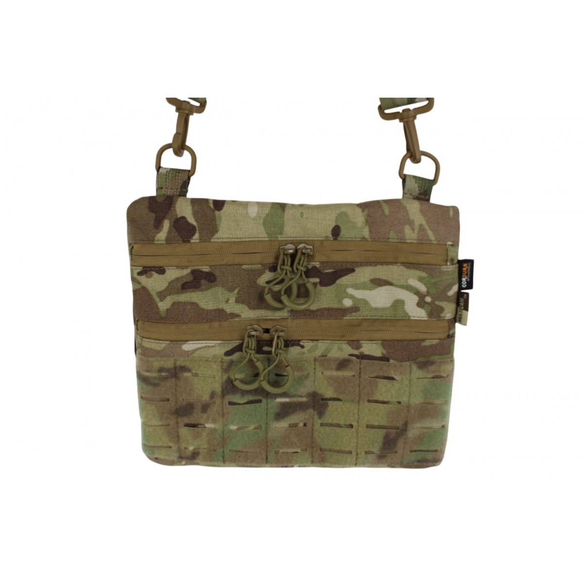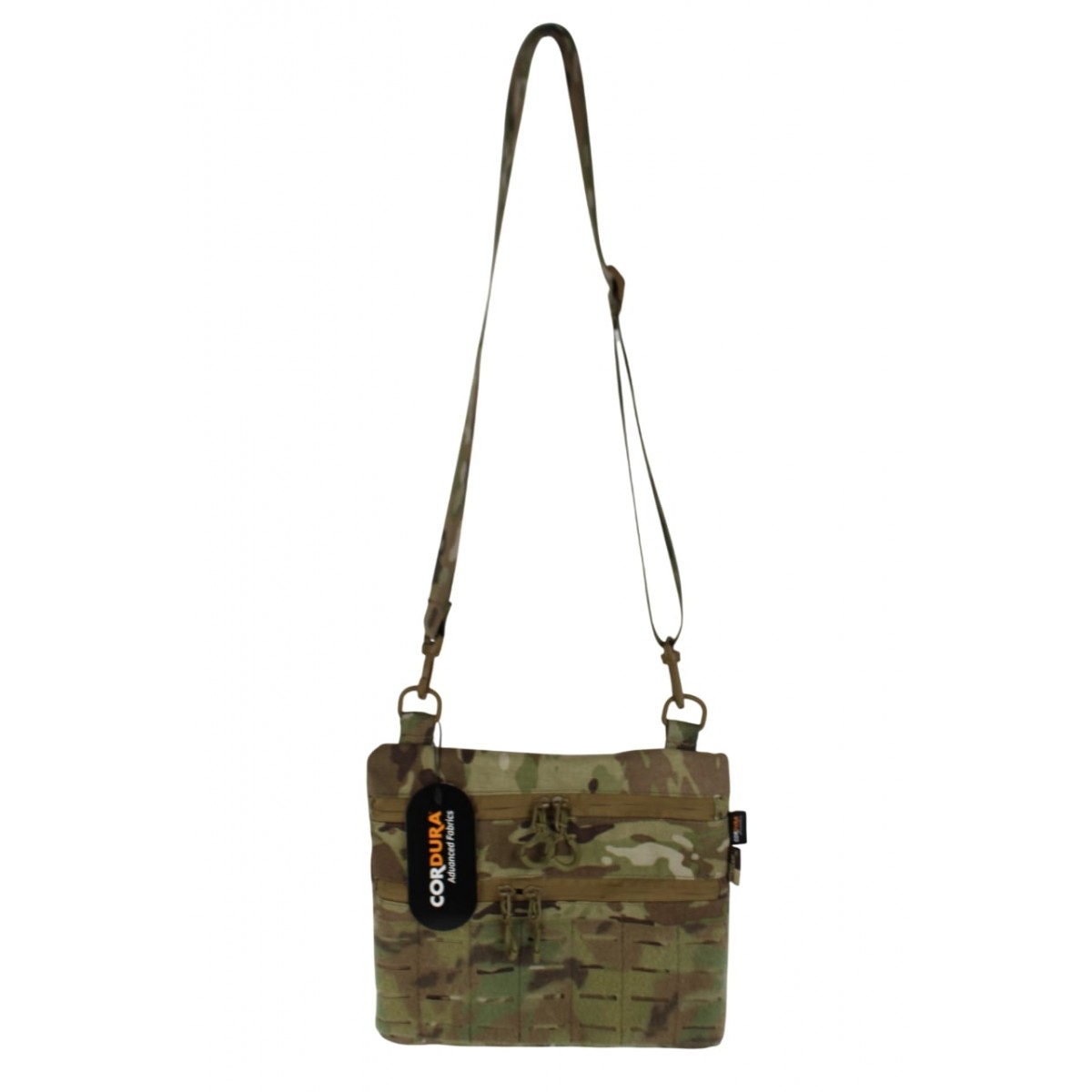 Тактична сумка через плече трапеція Milcore Multicam — компактна функціональна сумка з зносостійкої Cordura, розроблена виробником Milcore для щоденного носіння спорядження та документів у польових і міських умовах. Модель виконана в камуфляжі Multicam і орієнтована на військовослужбовців та активних користувачів, яким важливі надійність, зручна організація вмісту та комфорт під час тривалого носіння. За відгуками користувачів, сумка вирізняється зручною формою, якісною фурнітурою та продуманим внутрішнім простором.