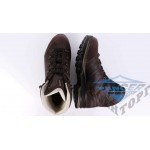 Верх черевиків практично повністю виготовлений з щільної натуральної шкіри темно-коричневого кольору, яка доповнюється декількома вставками з нейлону, використовуваного для створення гнучкої горловини і глухого» мови черевика. Носок і п'ятка посилені додатковим щільним шаром натуральної шкіри. Загальні якість пошиття відмінне, майже кожен елемент прошитий подвійною строчкою
