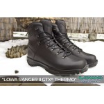 Ідеальна модель військових зимових черевиків для польових умов. Вони створені на основі мисливських черевик Ranger GTX. Черевики Ranger GTX Thermo отримали оновлену підметку, синтетичний утеплювач і позбулися звичного ранта з щільної гуми. Верх утеплених черевиків Ranger GTX Thermo виготовлений з щільної натуральної шкіри товщиною 2.4-2.6 мм, всередині водостійка мембранна підкладка Gore-Tex доповнюється шаром синтетичного утеплювача Primaloft, щільність утеплювача — 200 грам на метр квадратний. Черевики пошиті на базі оновленої підметки Vibram MVS, яка складається з поліуретанової проміжної підошви, жорстких стабілізуючих вставок і термополиуретановой підошви з універсальним протектором.