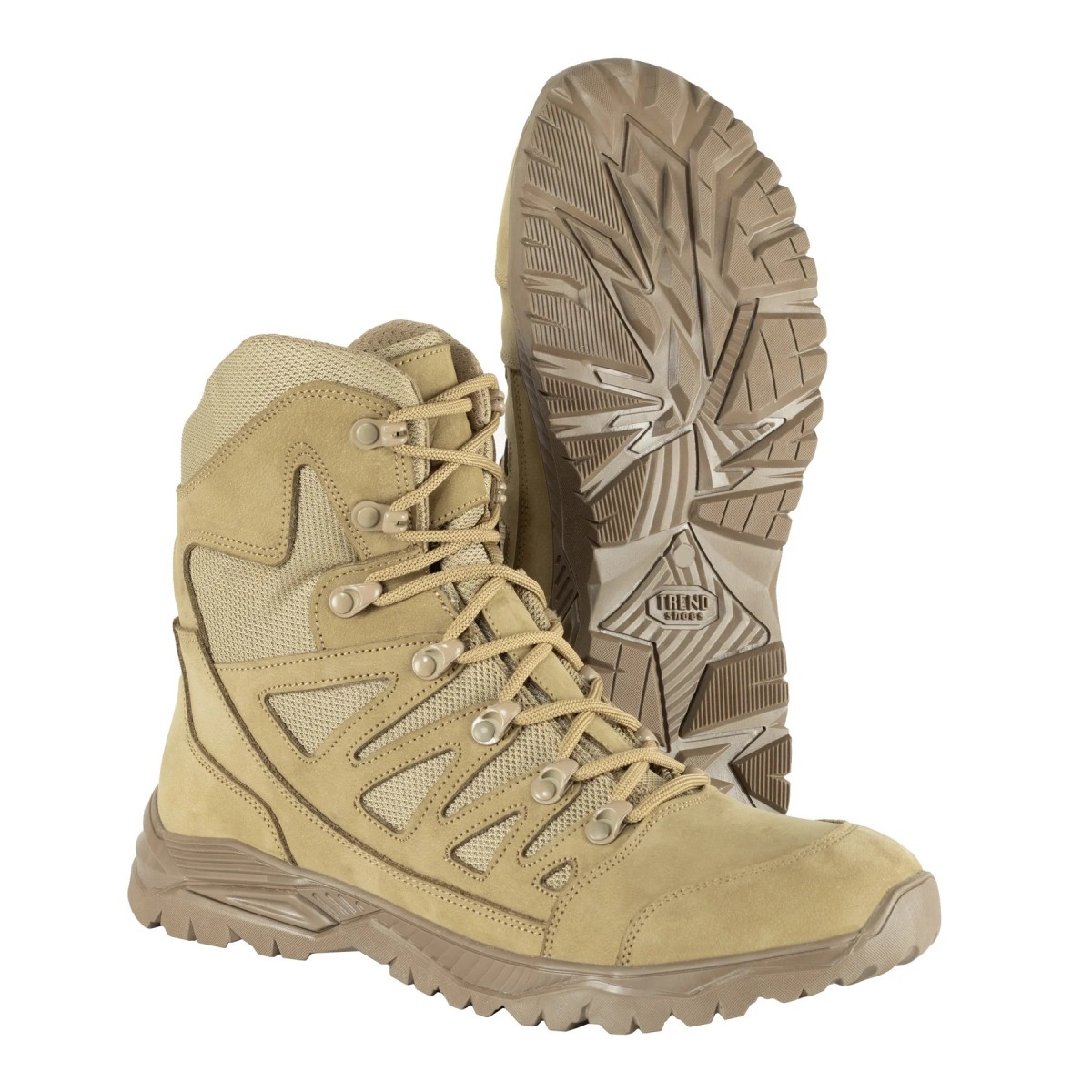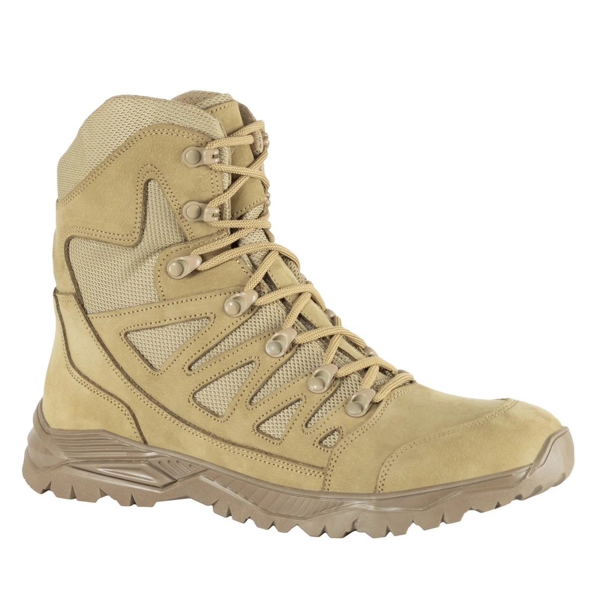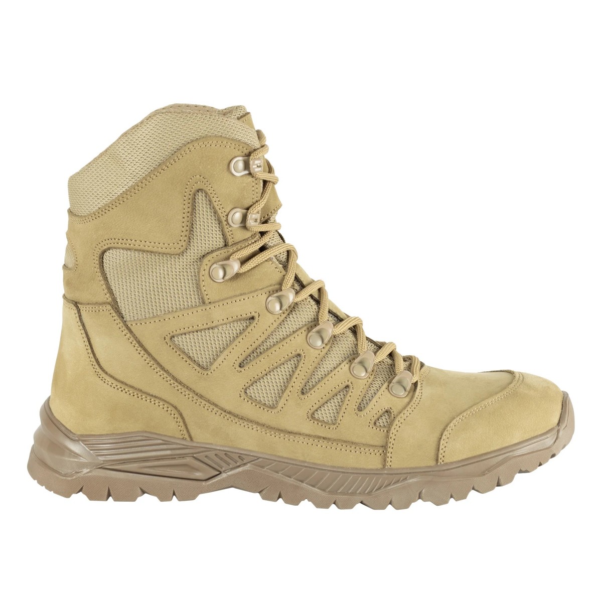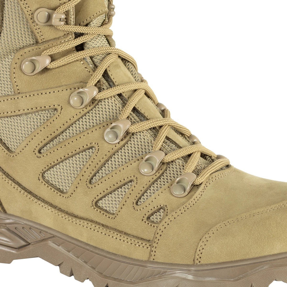 Напівботинки Cobra 925 кольору койот. Виготовлені з гідрофобного нубуку зі вставками міцної нейлонової тканини. П'ята на носок посилені. Для шнурівки використовуються металеві петлі та гачки. Підошва з піни Phylon, не ковзає.