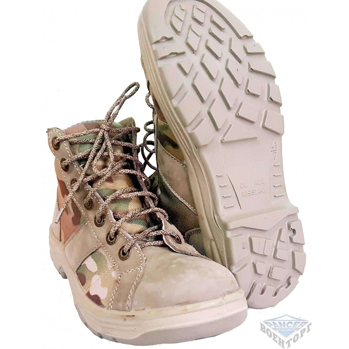 Підошва взуття виконана з міцного двошарового піно-поліуретану, масло-бензо-стійка, не змінна, антистатична. Підошва прикріплюється до черевиків шляхом проклейки і припаювання - що робить ботики практично монолітною конструкцією.
