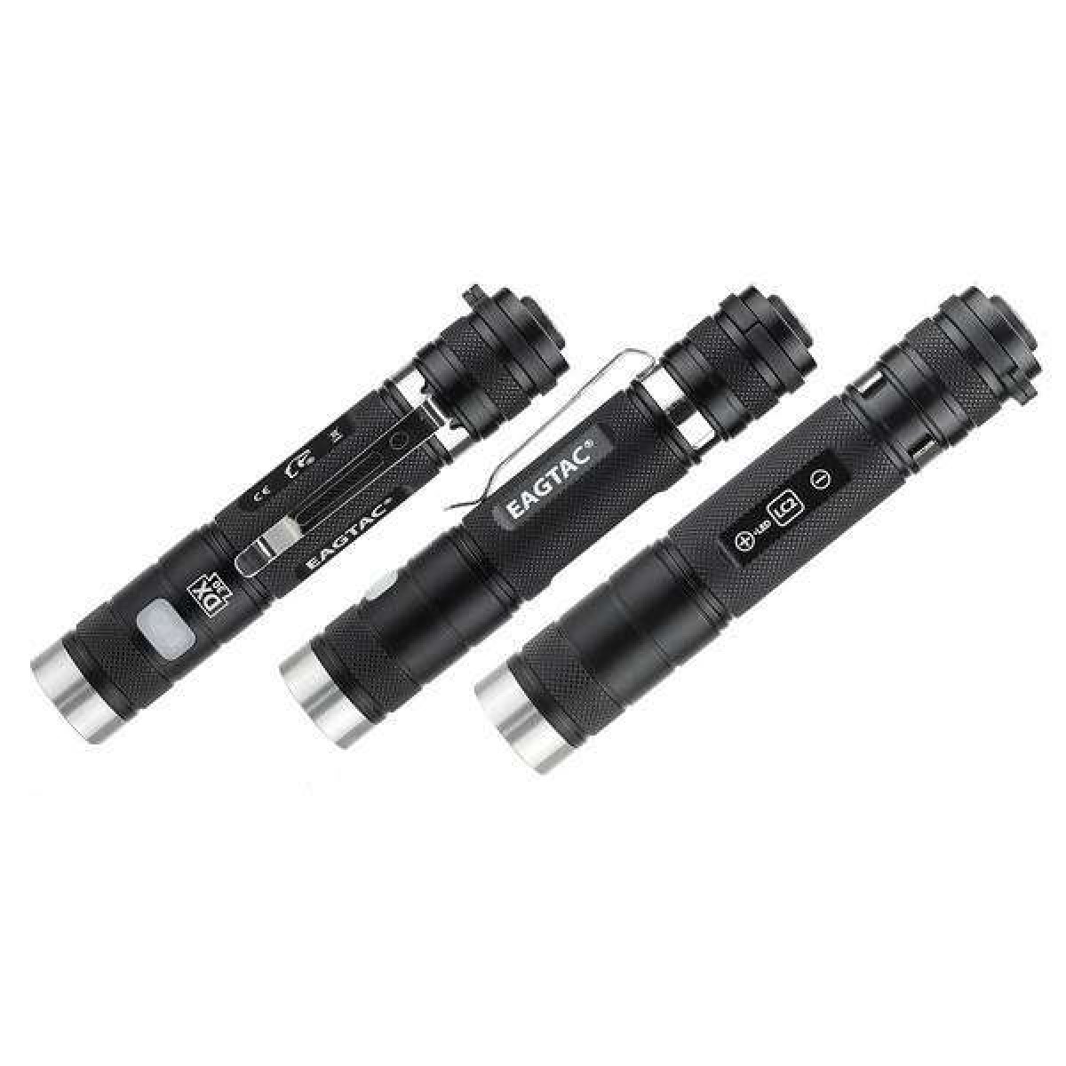 Драйвер EagleTac C3200L SC. На відміну від багатьох інших компаній, Eagletac виробляє свої власні драйвера, які максимально підходять під завдання, поставлені при виробництві конкретних моделей ліхтарів. Драйвер EagleTac C3200L SC (Side Click) підтримує дублююче бічне і торцеве управління ліхтарем, інформування про рівень заряду батареї, функцію енергозбереження і нульову силу струму в режимі очікування. Драйвер має вихідну силу струму 3.2 А (удвічі більше ніж драйвера ліхтарів Eagletac серії D25), що дозволяє більш ефективно працювати з сучасними потужними діодами. Драйвер оптимізовано з метою покращити стабілізацію світлового потоку при роботі на одному Li-Ion елементі живлення високого вольтажу. У ньому використані компоненти з ще більш низькою зовнішньою резистивностью, що дозволило істотно збільшити потужність світлового потоку і досягти незначного падіння напруги (<0.2 V) при заниженою (Step-Down) схемою перетворювача. ККД даного драйвера досягає 99%, що недосяжне для більшості драйверів інших виробників.