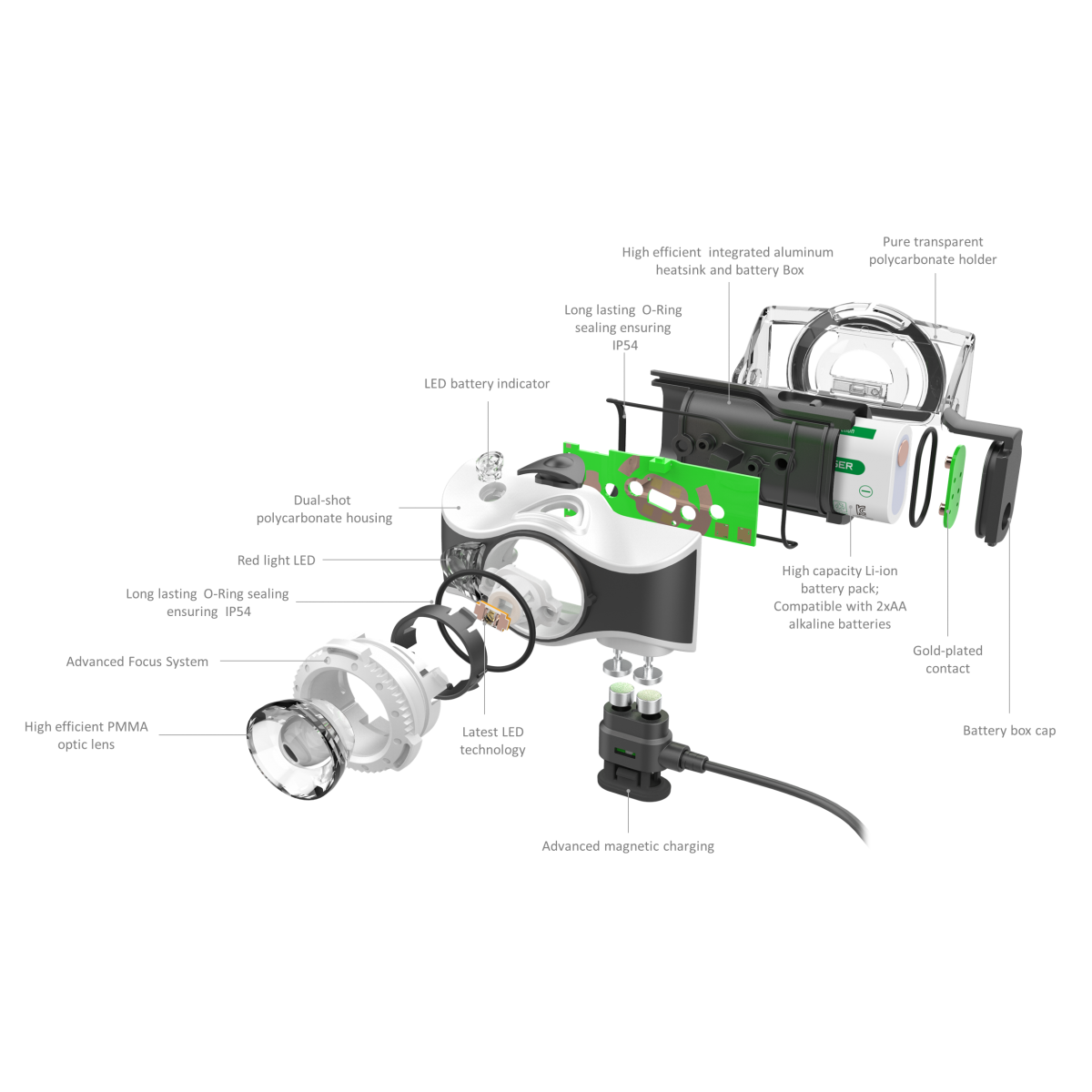 Багатоцільовий перезаряджається ліхтар cерии Sport. Знімна голова, що дозволяє використовувати ліхтар як ручний (без ремінця). Інноваційні системи - SLT (3 режиму + стробоскоп), червоний світлодіод (для читання), AFS, швидкий фокус RF, блокування від випадкового включення, індикатор заряду акумулятора. 2 функціональних режиму - постійний / енергозберігаючий. Регульований ремінець.