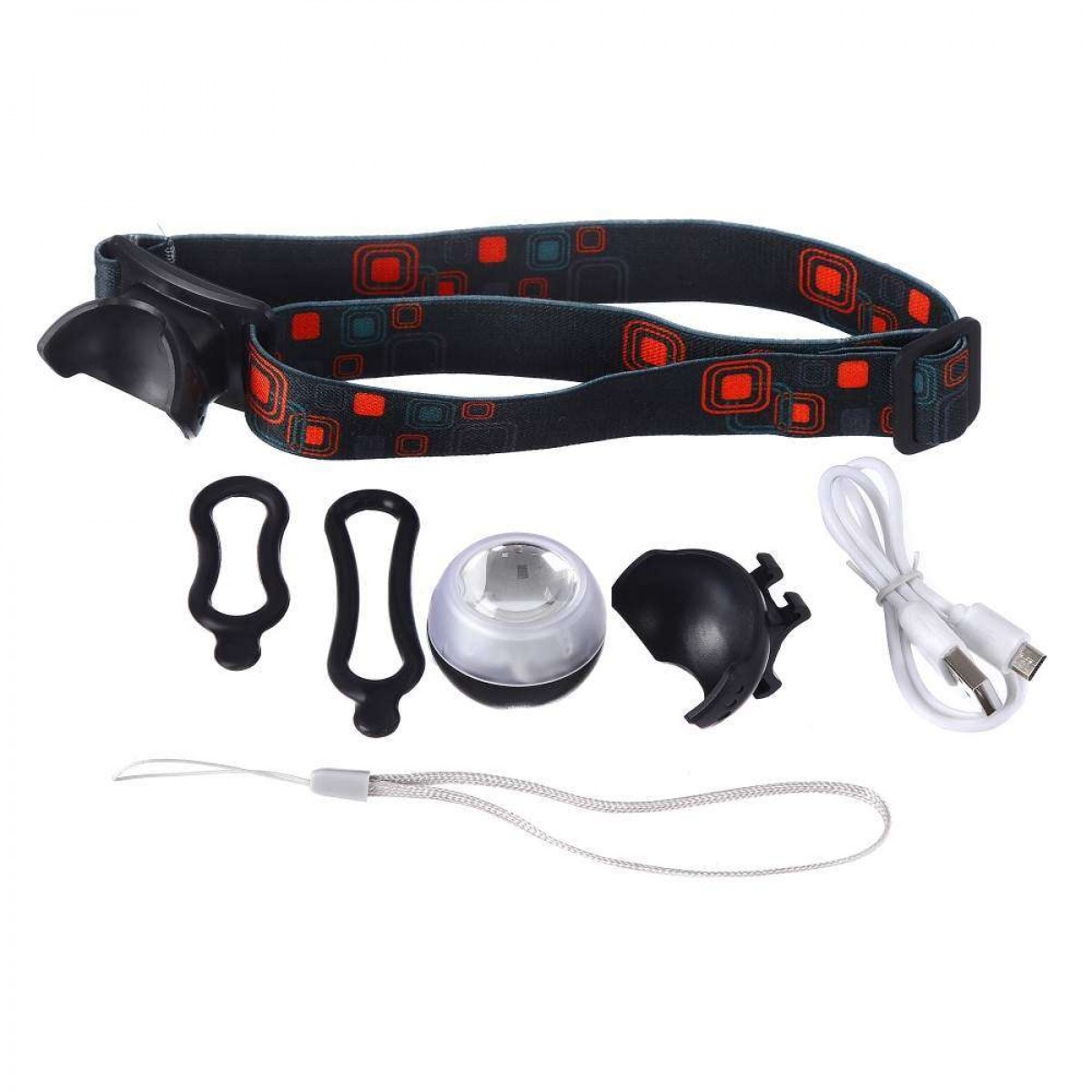 - налобний ремінець з вбудованим кріпленням для ліхтаря, платформа для ліхтаря для велосипеда з двома гумовими кріпленнями, ремінець на руку і зарядка USB;