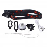 • Комплектація Ліхтар налобний ремінець з вбудованим кріпленням для ліхтаря, платформа для ліхтаря для велосипеда з двома гумовими кріпленнями, ремінець на руку і зарядка USB