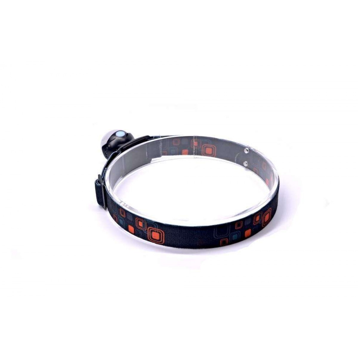 Не потрібно зусиль, щоб застосувати ліхтар за зручному вам призначенням – одним рухом руки він кріпитися магнітом на потрібну платформу. Ліхтар має великий діаметр яскравого світла і його півтони, світить червоним кольором і миготливим червоним світлом. Має дуже зручне будова, що має гіпоалергенну накладку на лоб, повторює його форму, що забезпечує максимальну безпеку і комфорт, високої якості регульовану гумку на лоб з тримачем для ліхтаря. Ліхтар має ультралегкий вага і малі габарити. Включається за допомогою м'якої гумової кнопки блакитного кольору. 4 режими роботи: 100%, 50% білий світ, червоне світло і миготливий червоний стробоскоп.