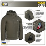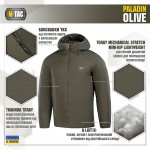 Куртка Paladin має 2 прикриті клапаном зовнішніх кишені на блискавці і один внутрішній для документів або дрібних речей. Край каптуру доповнений брендованою гумкою. Низ виробу має внутрішній еластичний шнур для індивідуального регулювання за обсягом.