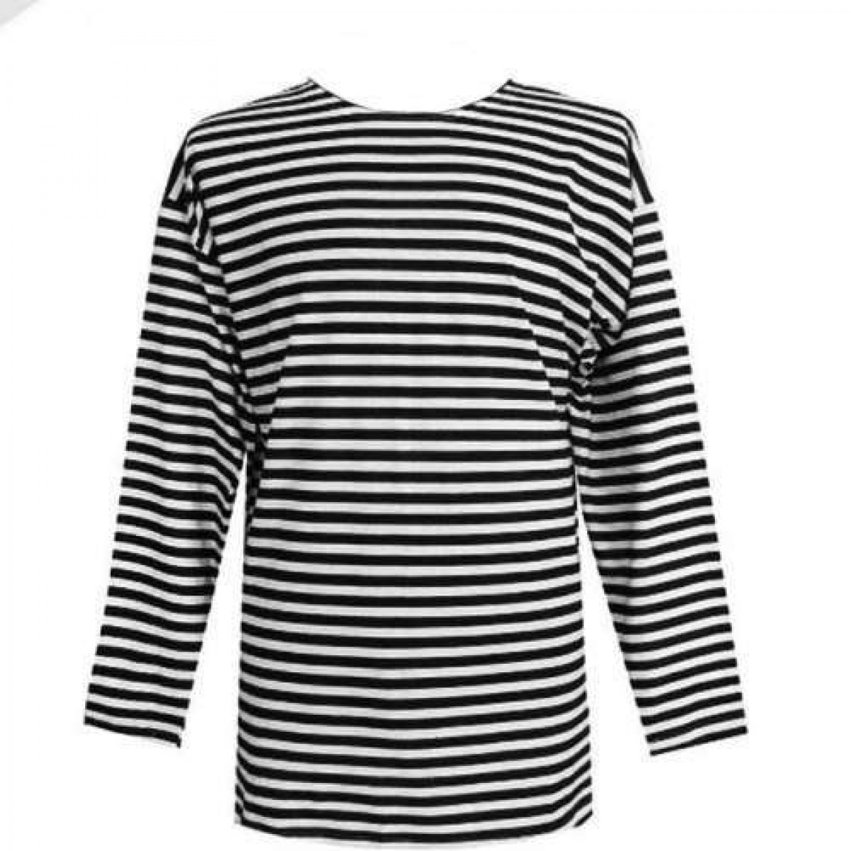 - Крій моделі являє собою футболку з довгим рукавом в чорно-білу смугу. Такий одяг дуже доречна у перехідний час року (осінь або весну), а також у зимовий сезон (як термобілизни).