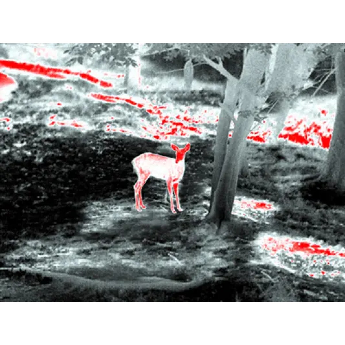 Тепловізор оснащений дисплеєм AMOLED 0,39″ з роздільною здатністю 1024х768px, що забезпечує отримання насиченої, чіткої та яскравої картинки незалежно від погодних умов і зовнішніх чинників.