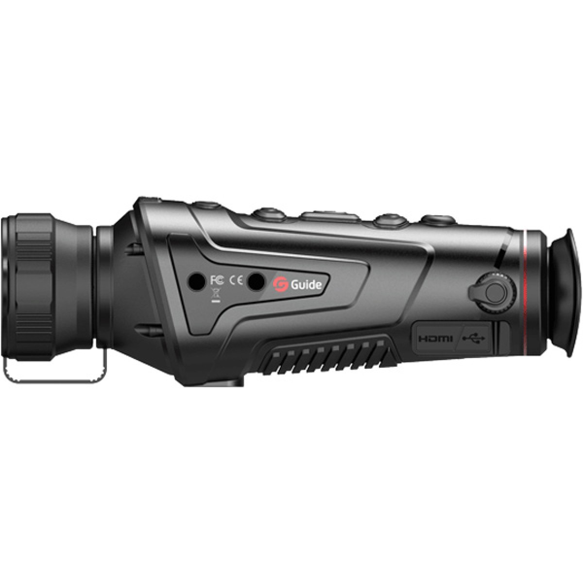 Серія теплових монокулярів Guide TrackIR у версії PRO розроблена для професійних мисливців. У серії представлені монокуляри з розмірами лінз: 19, 25, 35 та 50 мм. Прилад оснащений великим термодетектором з роздільною здатністю 640x480 та внутрішнім РК-дисплеєм розміром 0,4 дюйми. Для того, щоб полегшити визначення відстані, монокуляр має стадіометричний далекомір. Функція "картинка в картинці", цифровий зум 1-8х та відстеження гарячої точки дозволяють ще краще виявляти цілі. Важливо відзначити, що восьмикратне збільшення відбувається плавно, щоб користувач не втрачав ціль з поля зору. Частота оновлення в 50 герц забезпечує легке захоплення теплового силуету в динаміці та швидкому русі на пристойній відстані.