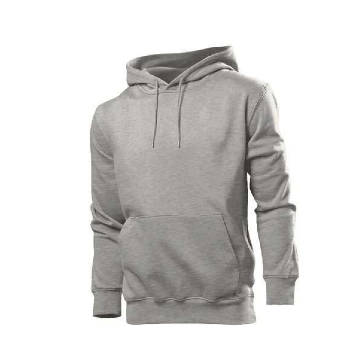 Худі чоловіче сірий ST4100Прокладка для зміцнення коміра, передній кишеню, підкладка з флісу з начосом, шнурок того ж кольору, бічні шви, еластичні манжети та пояс.