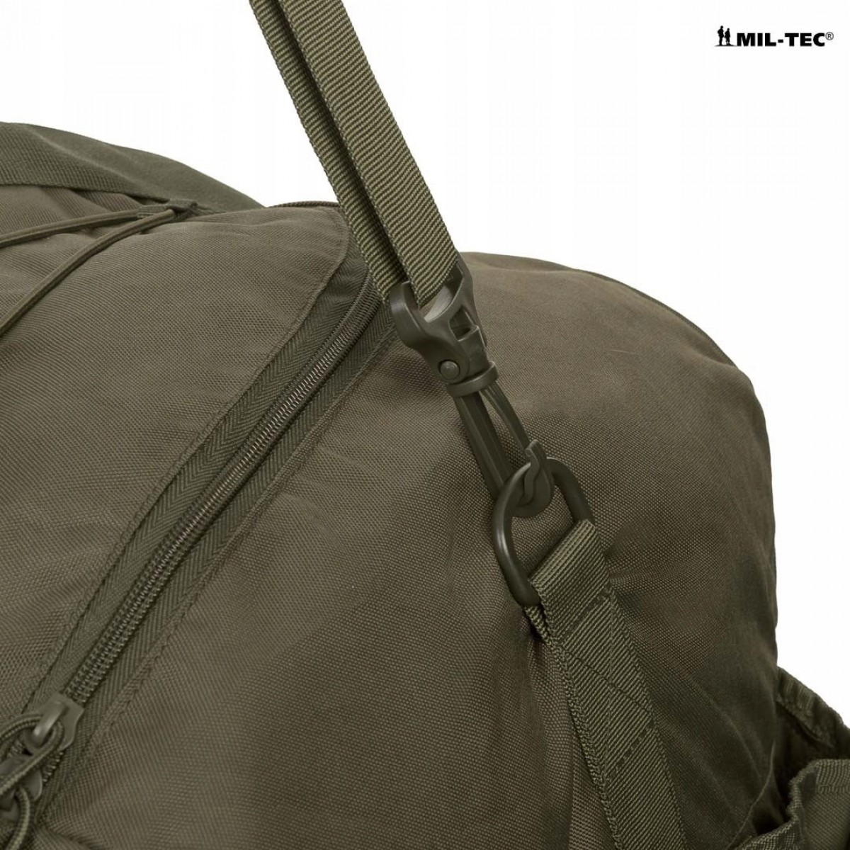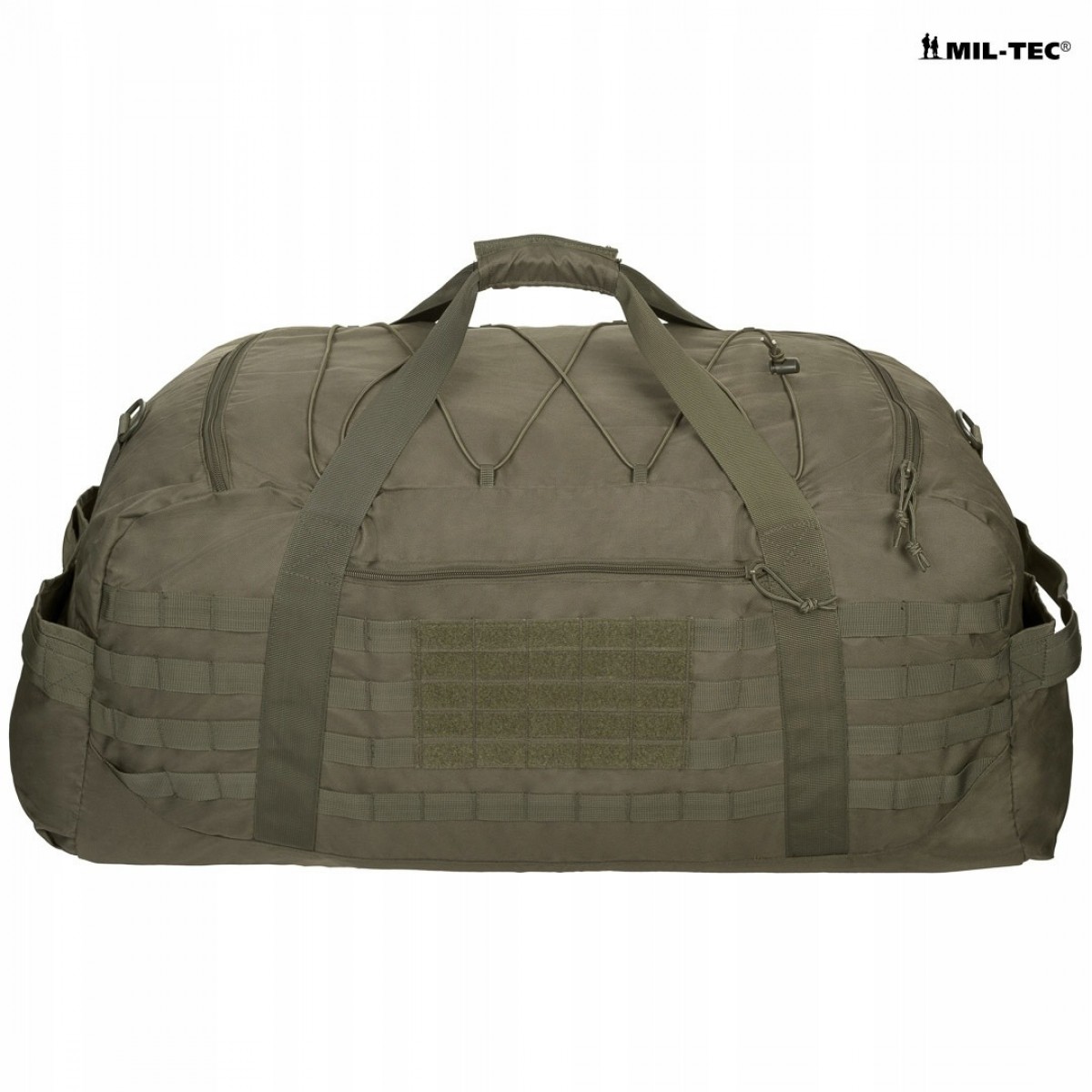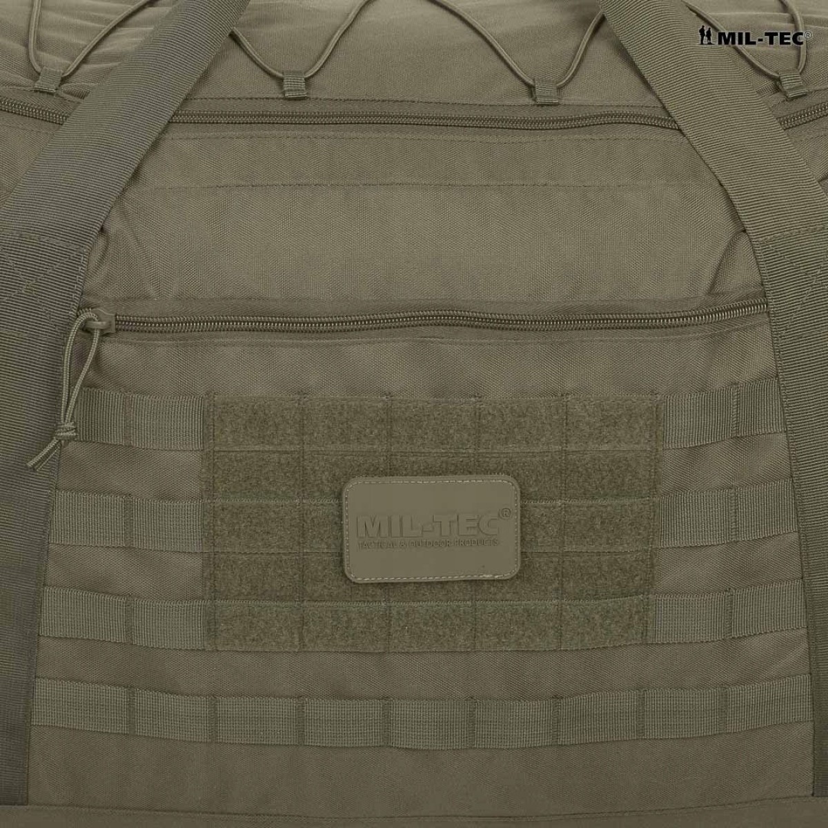 Великий вантажний простір і велика система кишень. Просторе основне відділення об'ємом приблизно 105 л. Система зовнішніх кишень полегшує організацію багажу та дрібних предметів спорядження. Дві бічні кишені на блискавці ідеально підходять для електроніки та документів. Дві бічні кишені на липучці ідеально підходять для продуктів або пляшки з водою. На клапані є гумовий шнур для кріплення куртки. Сумка обладнана двома великими монтажними панелями за модульною системою MOLLE/PALS — її можна розширити додатковими кишенями або підсумками. Стрічки модульної системи, покриті липучкою, для кріплення нашивок і нашивок бойового духу. Нашивка Mil-Tec Velcro в комплекті.