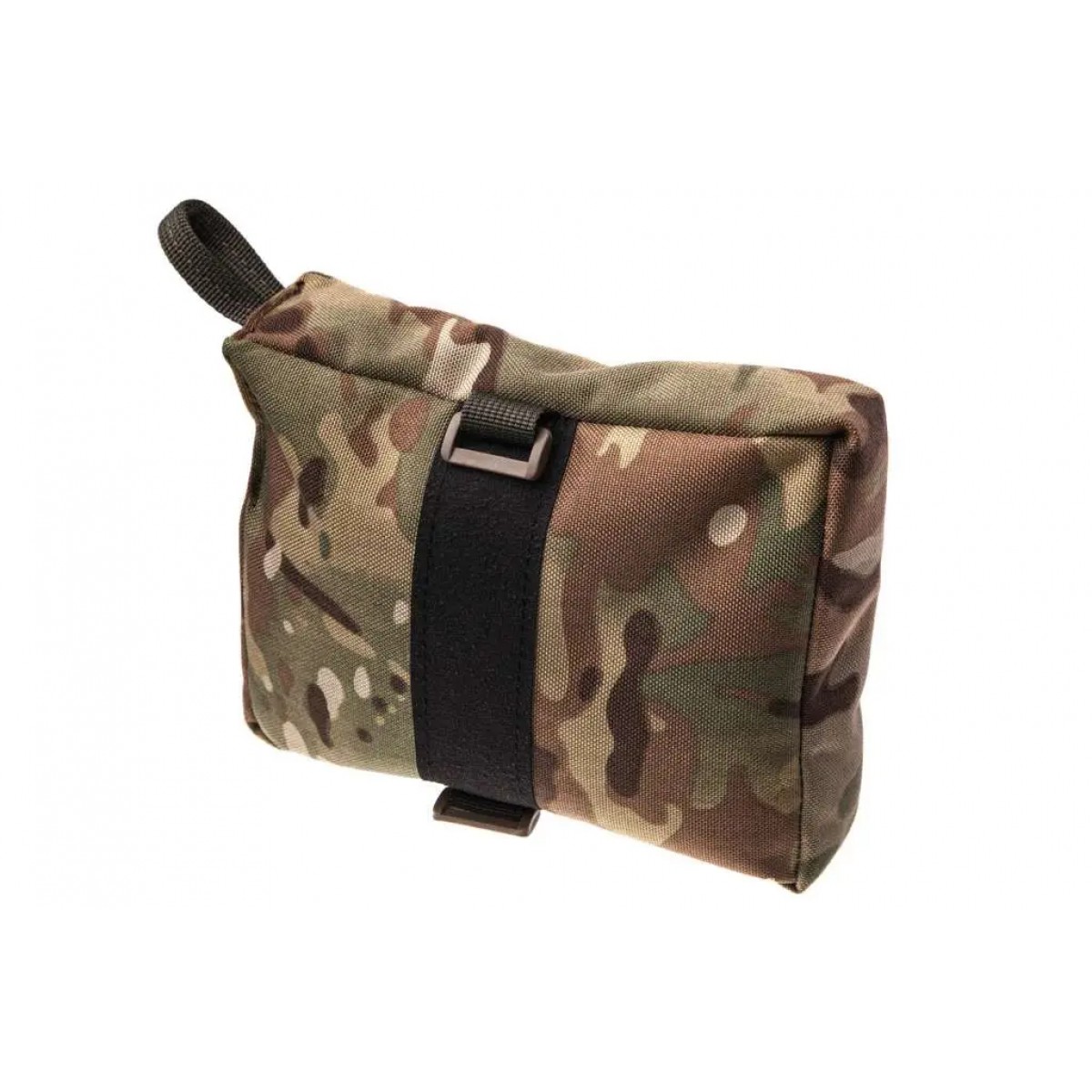 У малому барикадному мішку є нековзні накладки, затяжка на велкро для надійного кріплення до зброї та петля для кріплення до рюкзака. Наповнення - пластикові гранули.