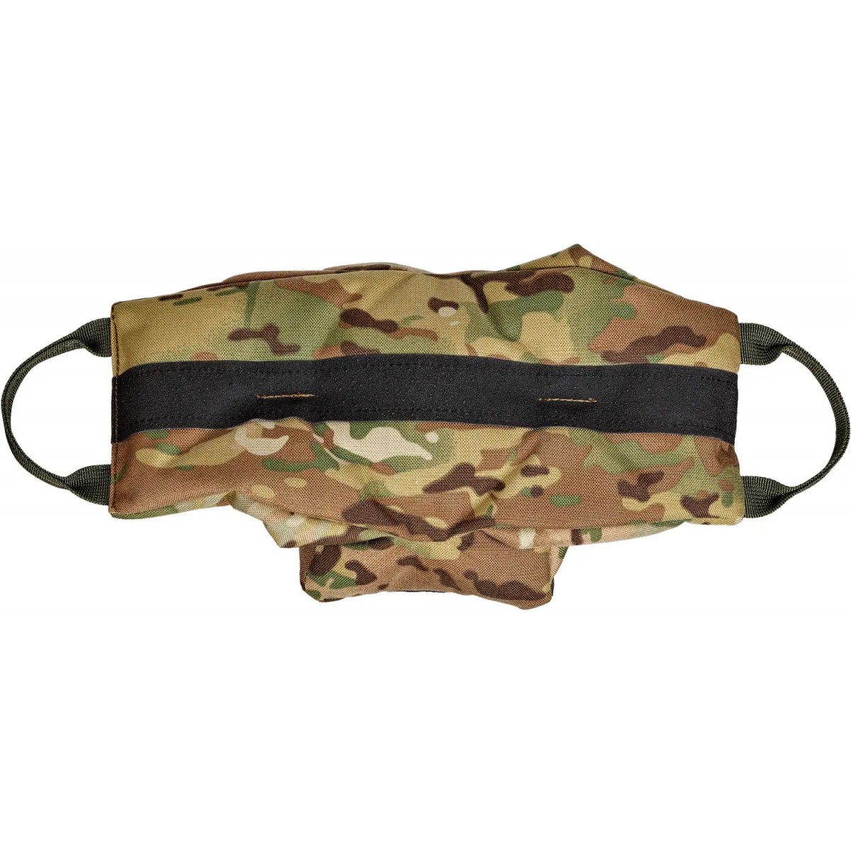 У малому барикадному мішку є нековзні накладки, затяжка на велкро для надійного кріплення до зброї та петля для кріплення до рюкзака. Наповнення - пластикові гранули.