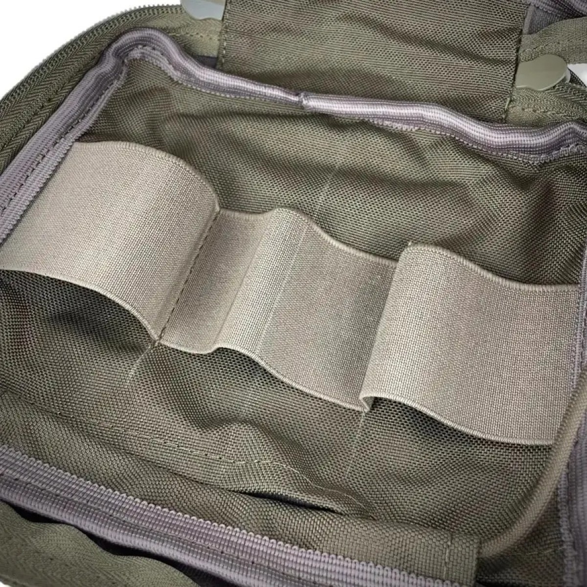 Цей підсумок оснащений системою кріплення MOLLE, що дозволяє легко і надійно прикріпити його до різних тактичних рюкзаків, жилетів чи іншого спорядження з MOLLE-інтерфейсом. Це дає вам можливість зручно організувати і зберігати свої речі залежно від ваших потреб і пристосувати підсумок до конкретної ситуації.