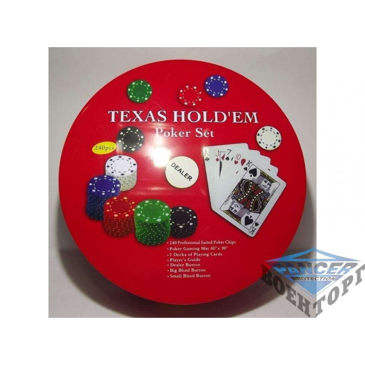 Набір для гри в покер в метал. упаковці (240 фішок+2 колоди карт+полотно)