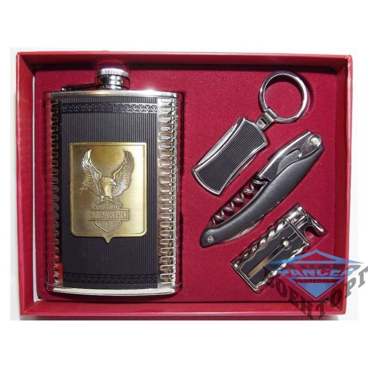 Набір: фляга + запальничка + брелок + ножа/штопор.