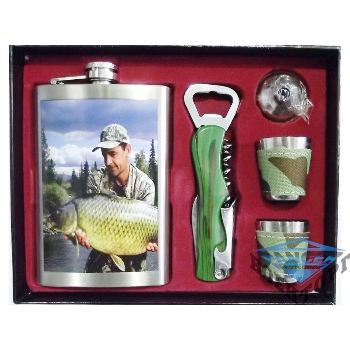 Набір: фляга + 2 стопки + лійка + відкривачка.