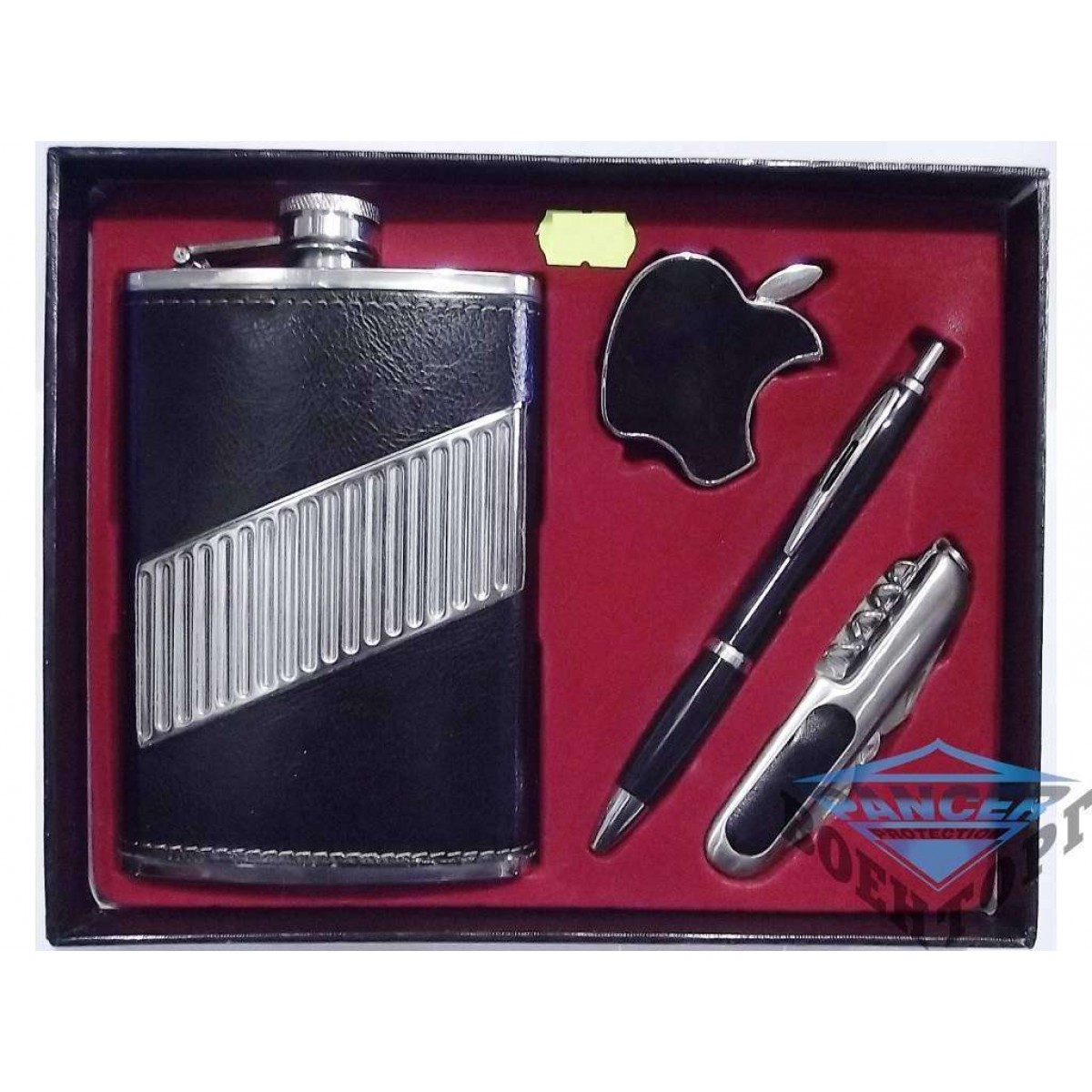 Набір: фляга + запальничка + ручка + складаний ніж. Об'єм: 270 мл