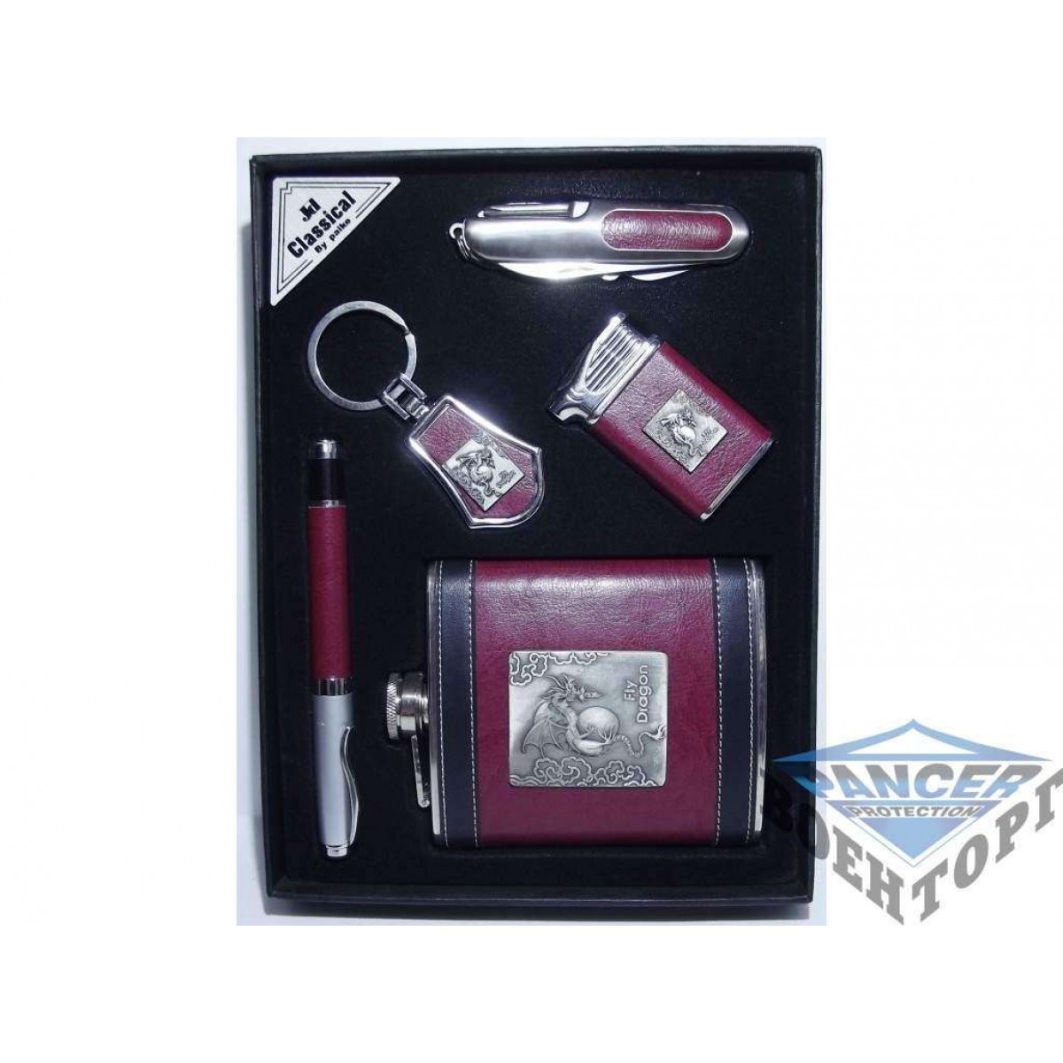 Набір: фляга + ніж + запальничка + ручка + брелок.