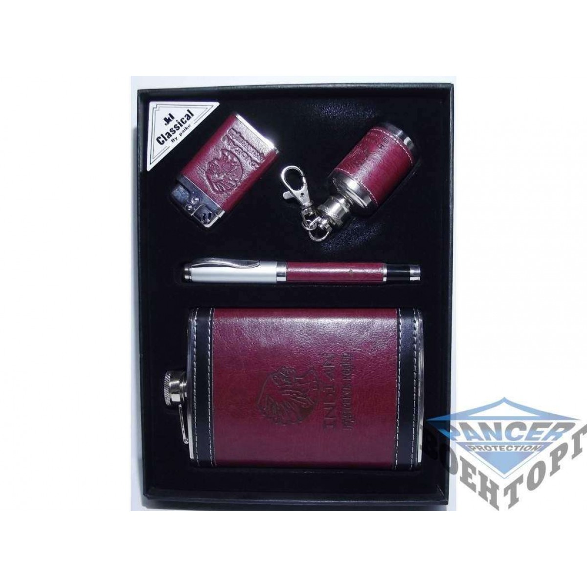 Набір: фляга + ручка + запальничка + міні фляга у вигляді брелока.