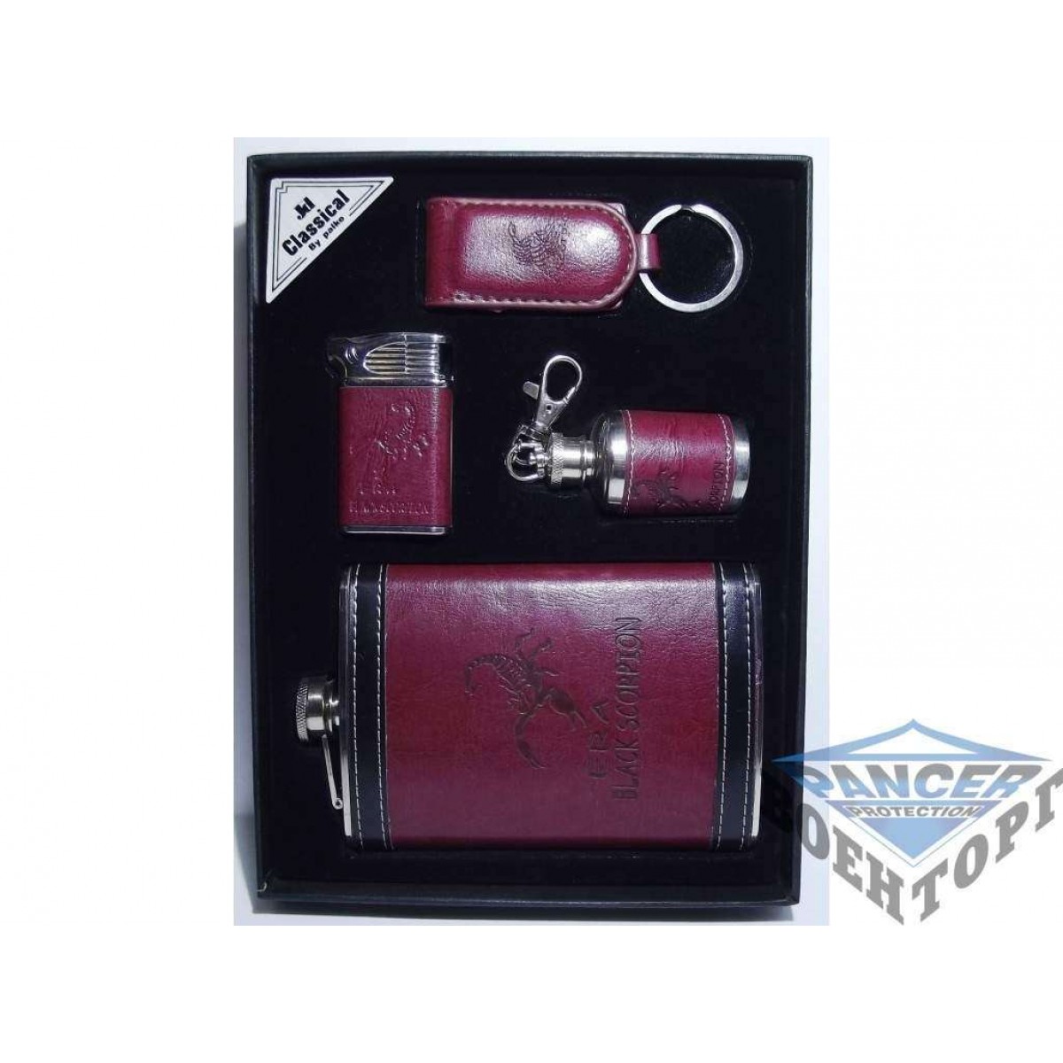 Набір: фляга + запальничка + брелок + міні фляга у вигляді брелока.